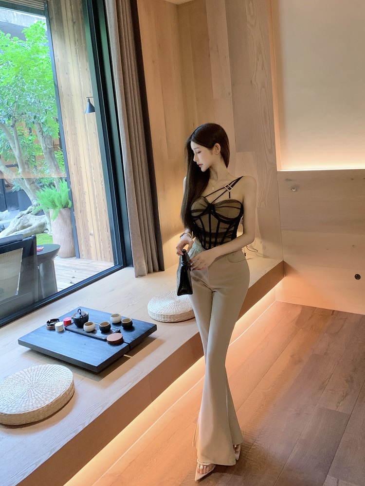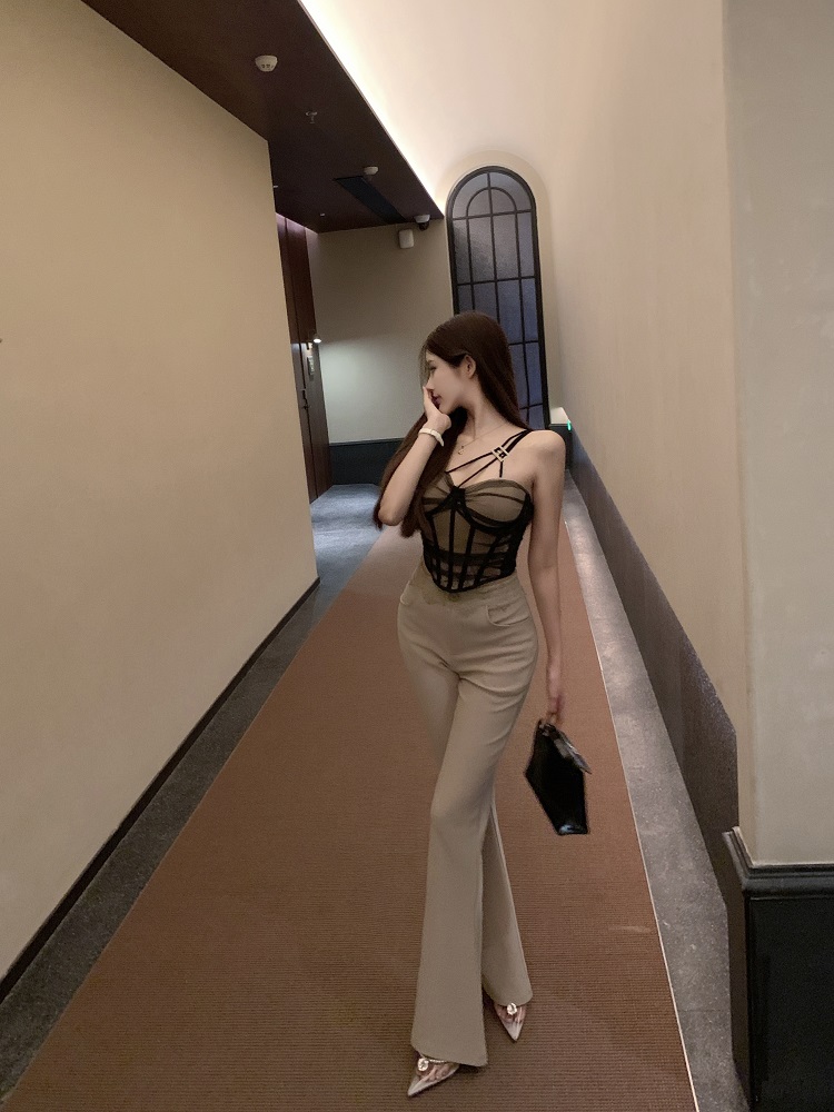 Concert Outfit Fitted Mesh V Fishbone, BuiltCh Pad Y2K Top