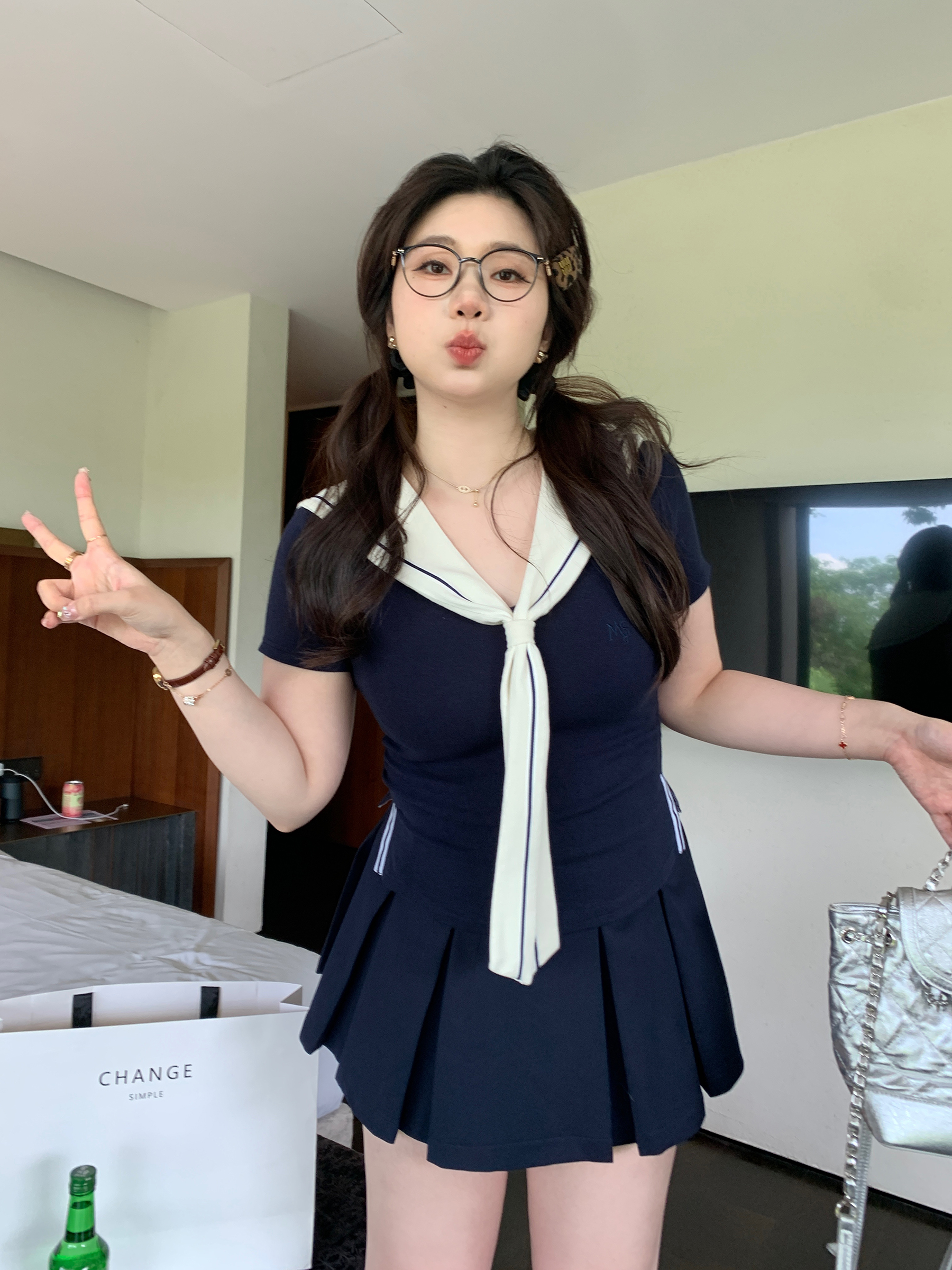 Elevate your wardrobe with our Fitted T-Shirt featuring a Detachable Navy Collar Vest, perfect for a chic and stylish look! Designed with a slightly chubby fit, this top flatters your silhouette while providing comfort throughout the day. The unique collar vest adds a touch of sophistication, making it suitable for both casual outings and more polished occasions. Don’t miss out on this versatile piece—add it to your cart today and redefine your fashion statement!