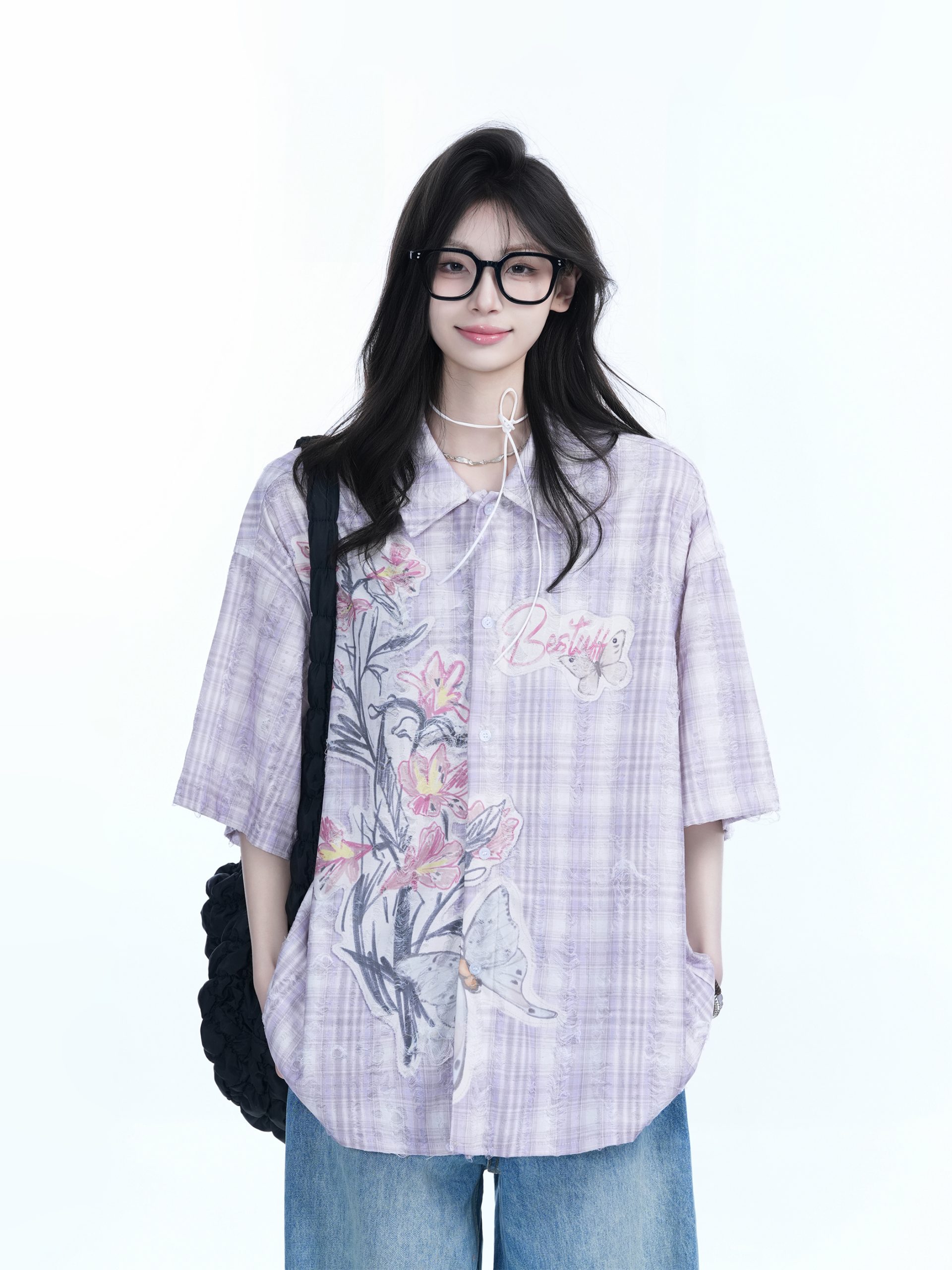 Elevate your wardrobe with our Floral Embroidery Pink Purple Checkered Short Sleeve Shirt for Women, designed for a trendy loose fit that embraces the essence of national style. This chic shirt features vibrant floral embroidery, making it a perfect statement piece for Y2K fashion lovers. Crafted for comfort and style, it effortlessly pairs with jeans or skirts for a fresh, fashionable look. Don’t miss out on this unique addition to your collection—add it to your cart today!