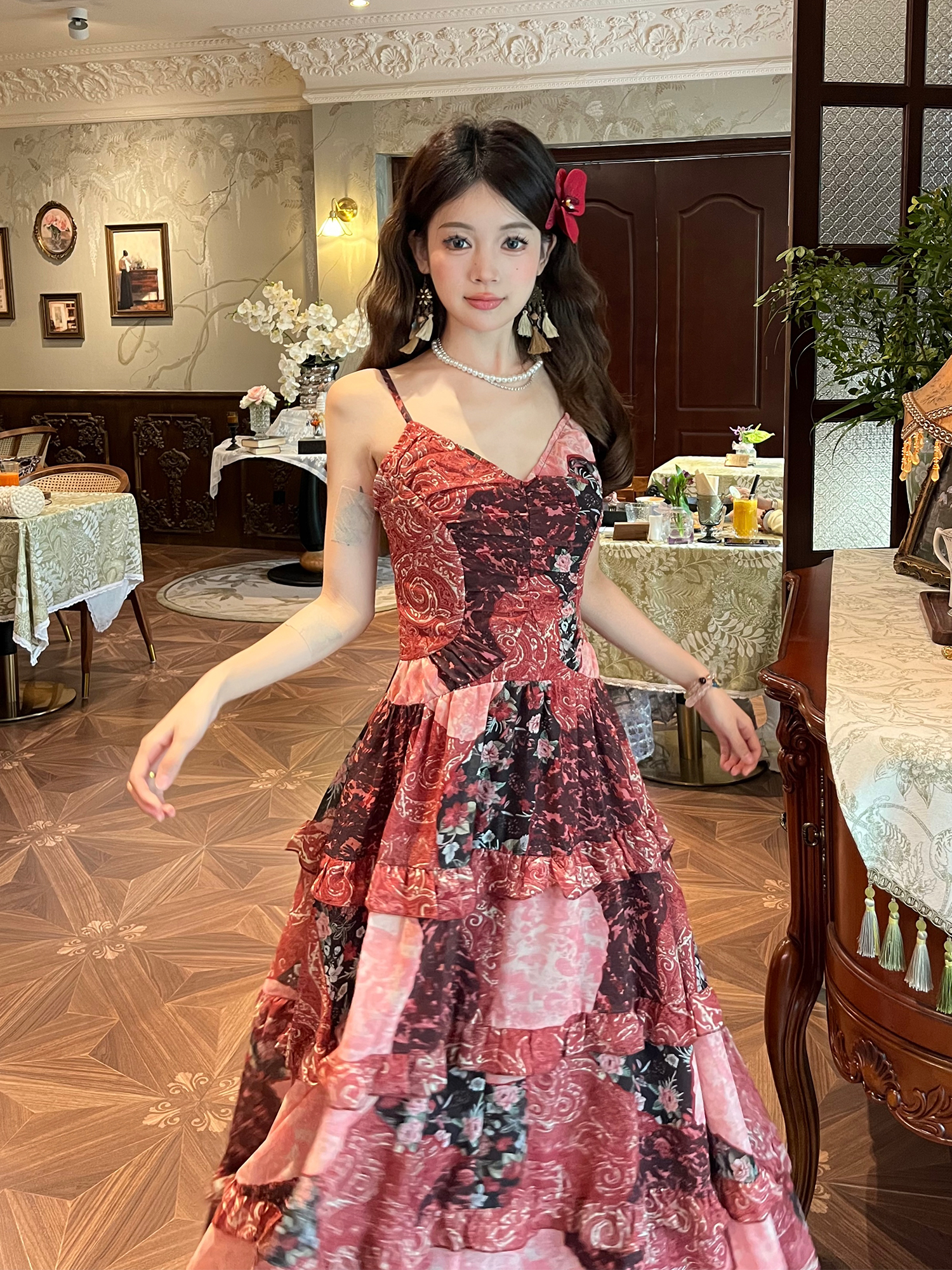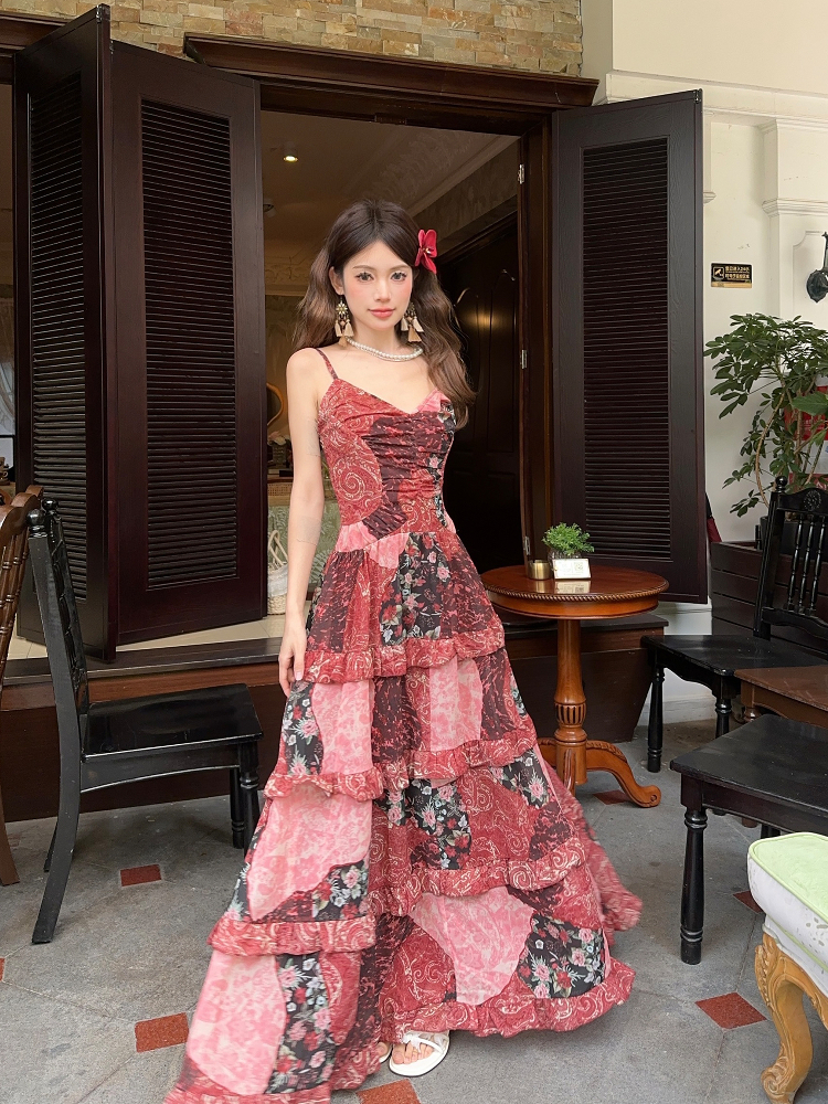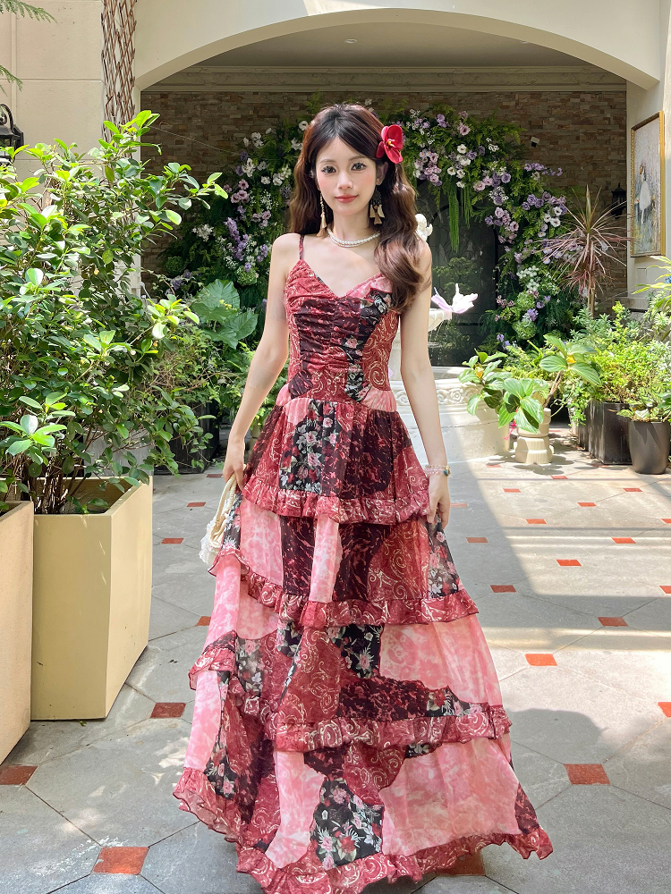 Concert Outfit Floral Lace Spaghetti Strap Dress Thai pired Summer Beach Dress a Boho Look