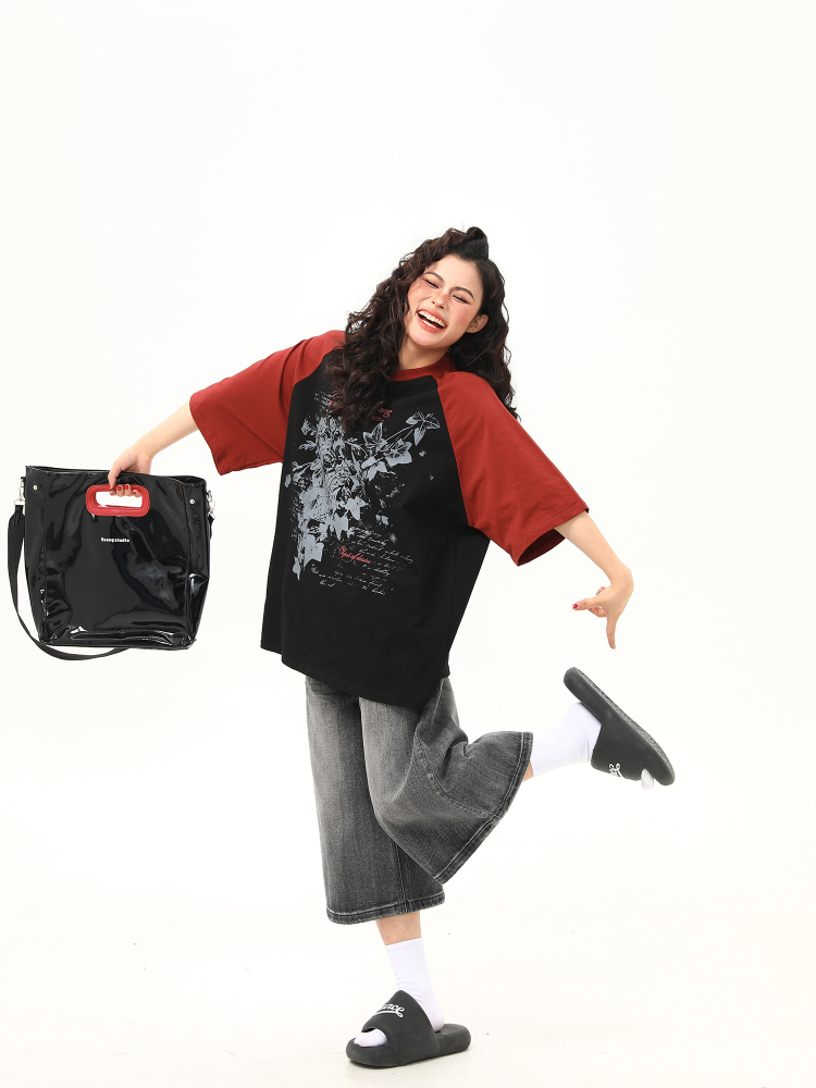 Elevate your summer wardrobe with our Floral Printed Color-Blocking Raglan Short Sleeve T-Shirt for Women. This trendy tee features a loose fit design that effortlessly combines comfort with a chic American retro style, making it perfect for sunny days out or casual gatherings. With its vibrant floral prints and stylish color-blocking, this t-shirt adds a fresh, fashionable touch to any outfit. Don’t miss out on this essential piece—add it to your cart today and embrace effortless style!