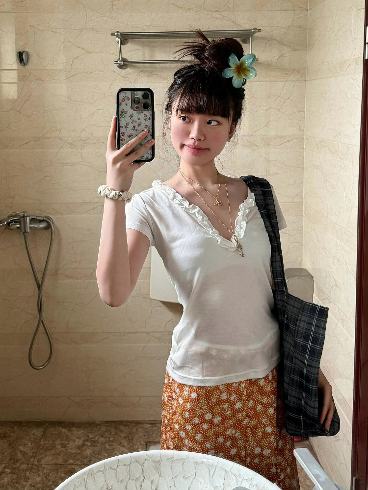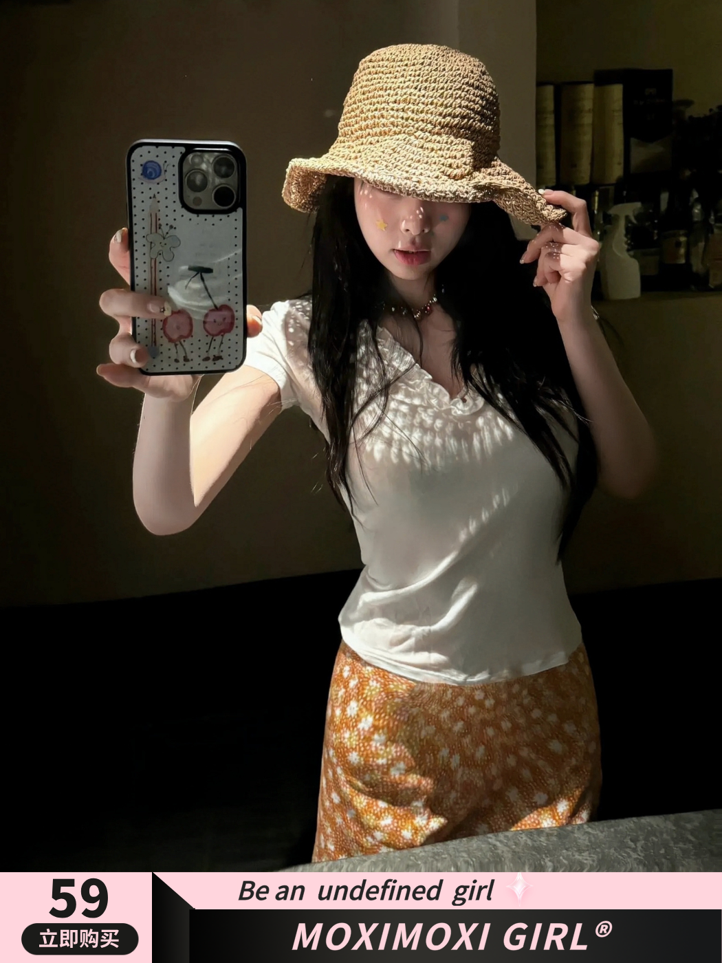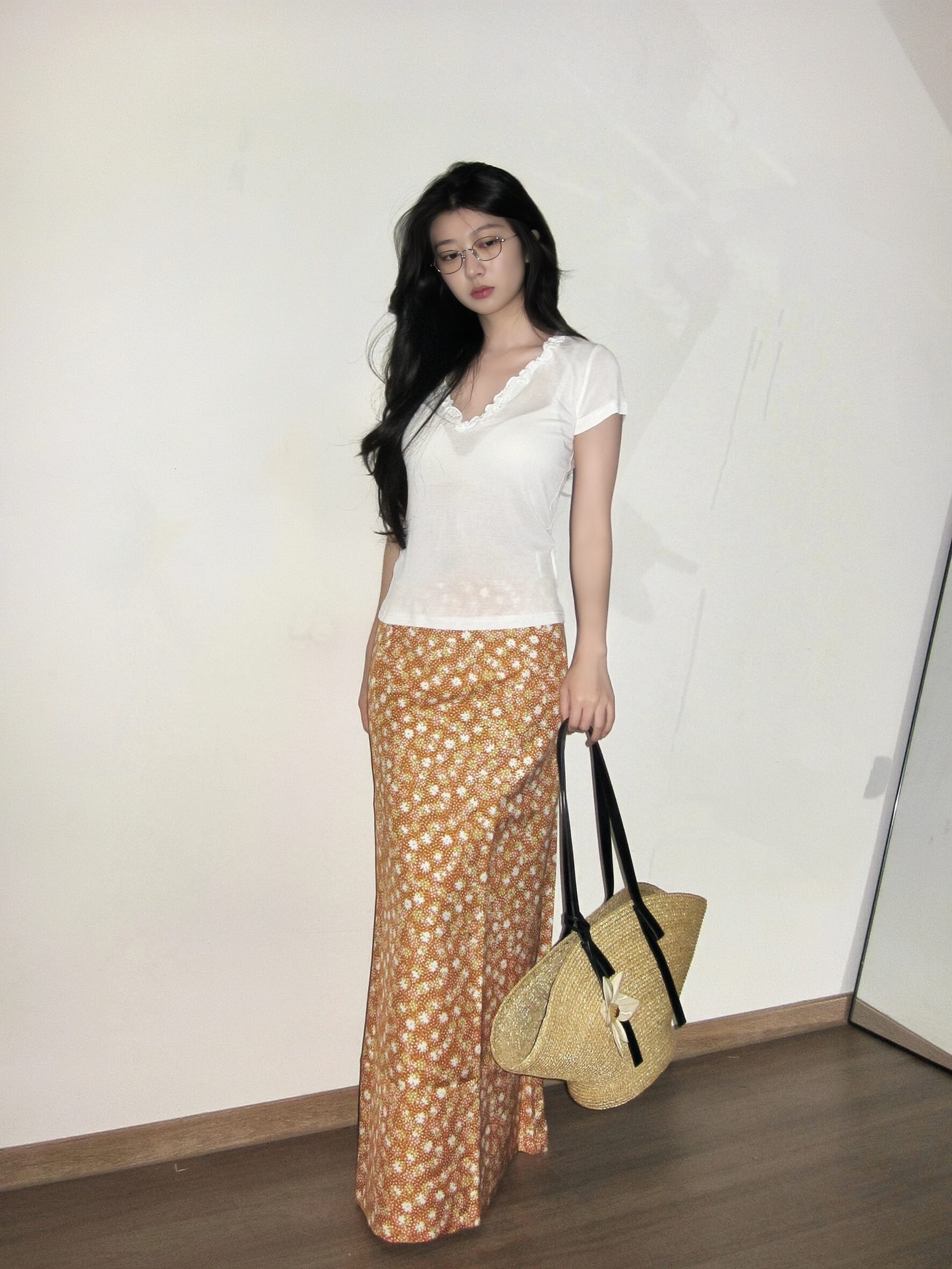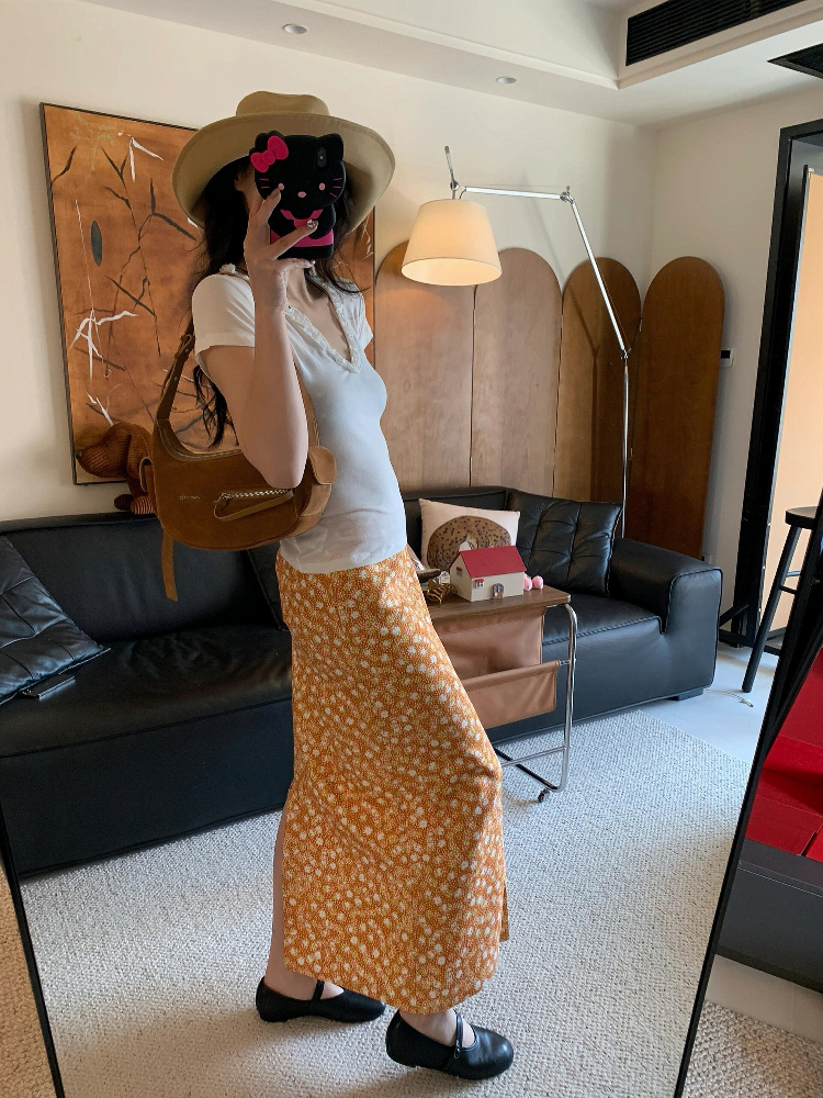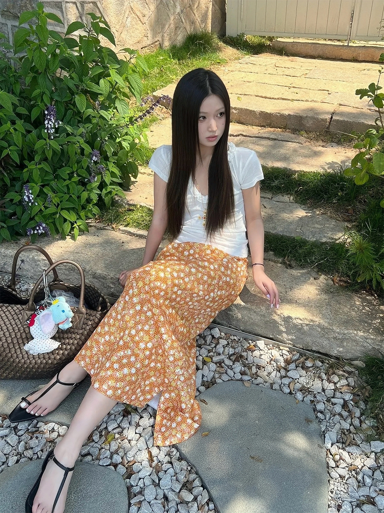 Concert Outfit Floral Half Skirt Sweet Little Pumpkin H Line White T- shirt Y2K