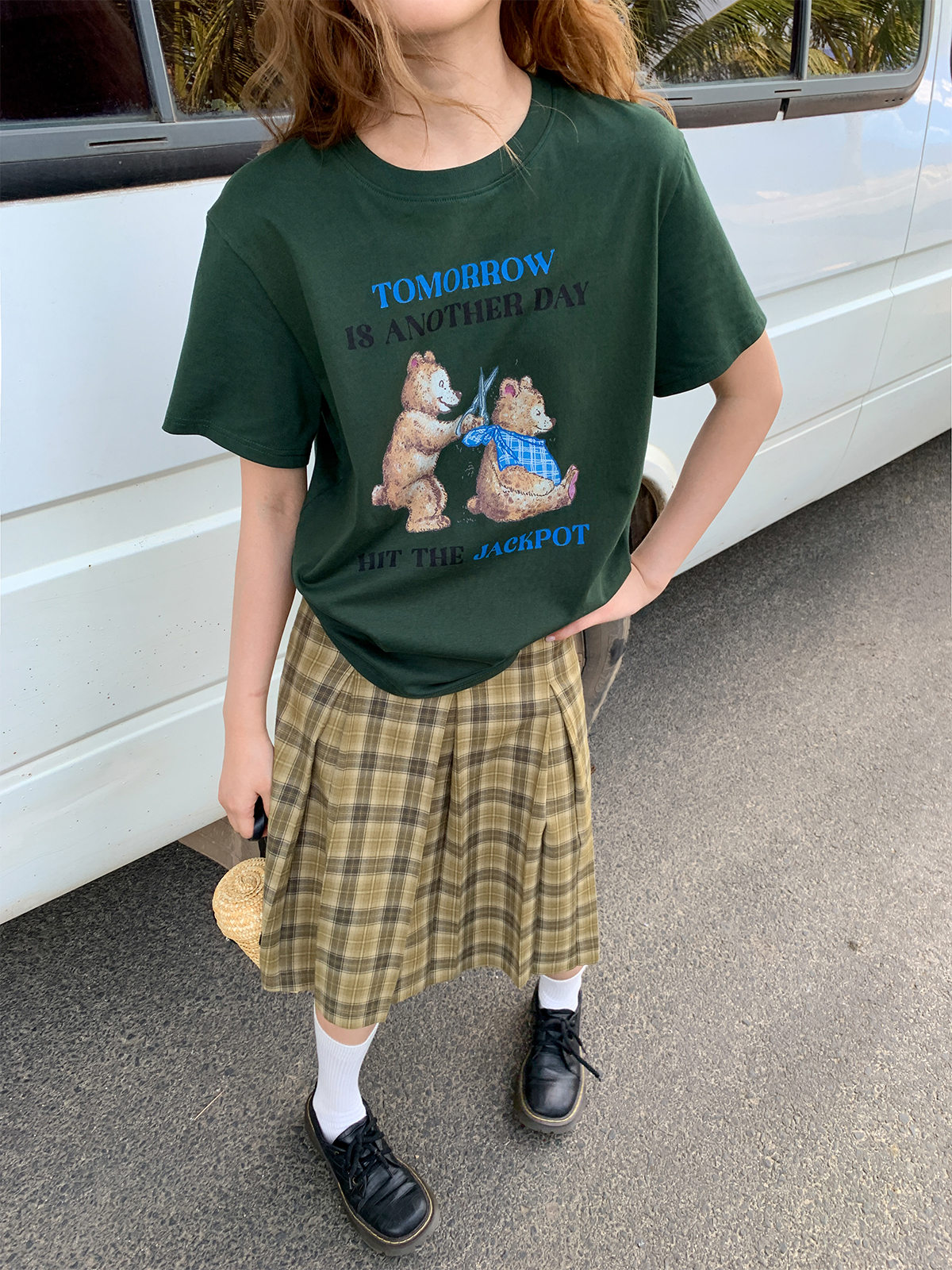 Concert Outfit Fun Bear Print Loose Short Sleeve Women Summer Pure Cotton Neck Top, Casual
