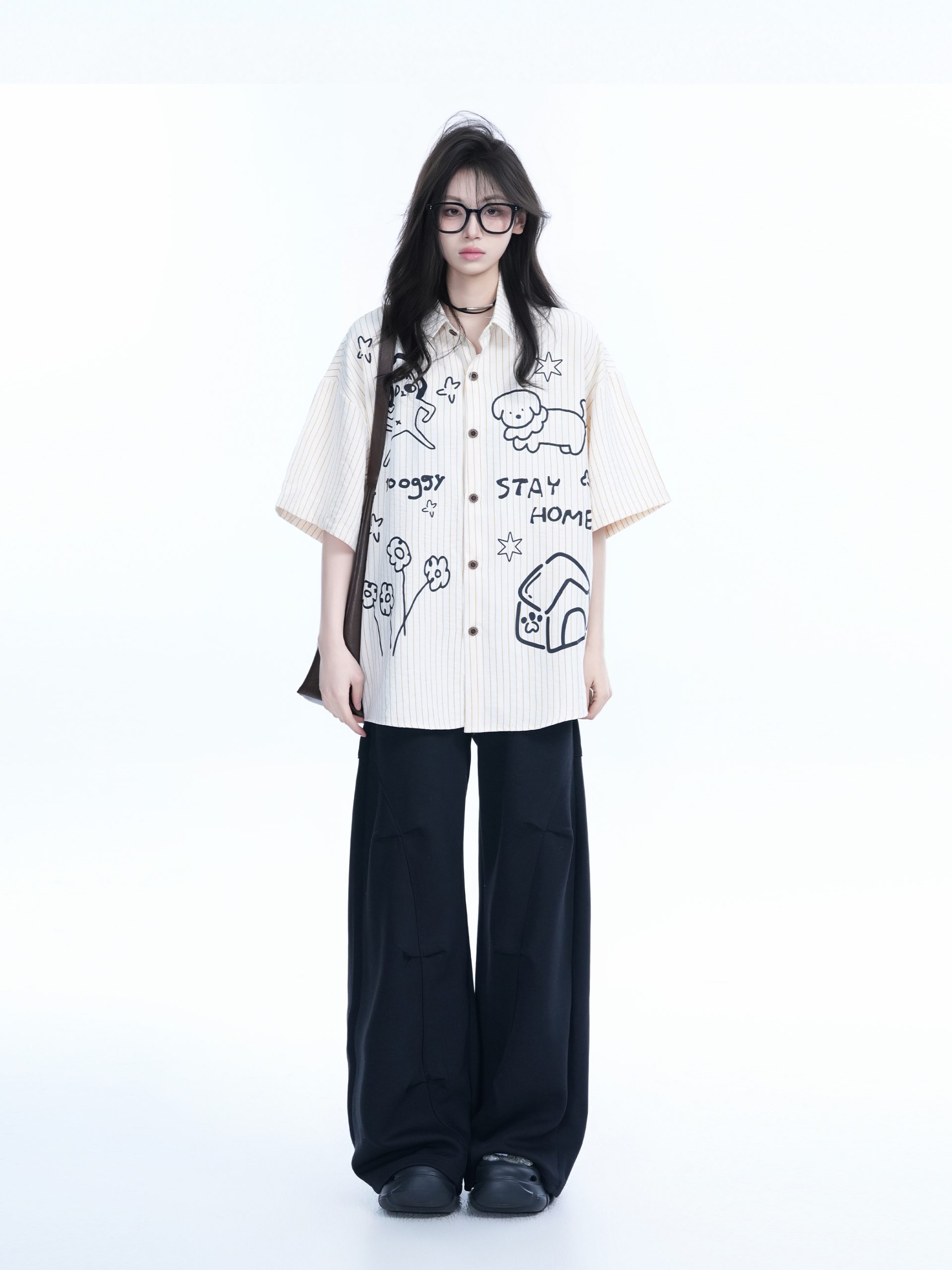 Elevate your casual wardrobe with our Fun Cartoon Doodle Dog Vertical Striped Short-Sleeve Shirt for Women. This trendy top features a loose fit that ensures all-day comfort while showcasing playful doodles in vibrant colors, perfect for embracing that nostalgic 90s style. Whether you’re out for brunch or just lounging at home, this shirt is a delightful addition to any outfit. Don’t miss out on this unique piece—add it to your cart today and express your fun side!