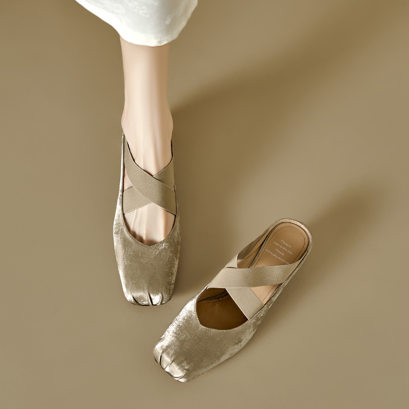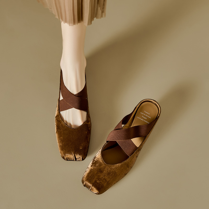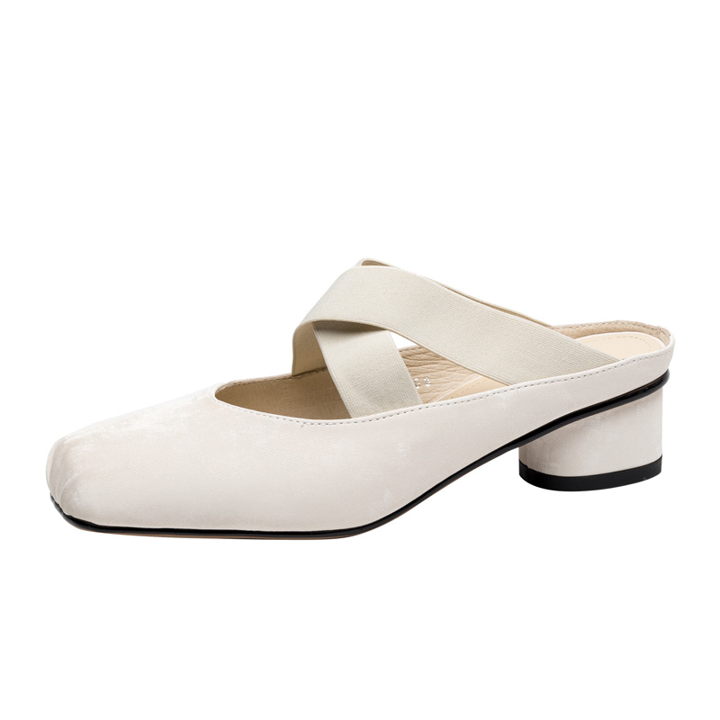 Concert Outfit Genuine Leather Cross Strap Open Toe Mid Heel Square Toe MulesItalian, Footwear Modern istas