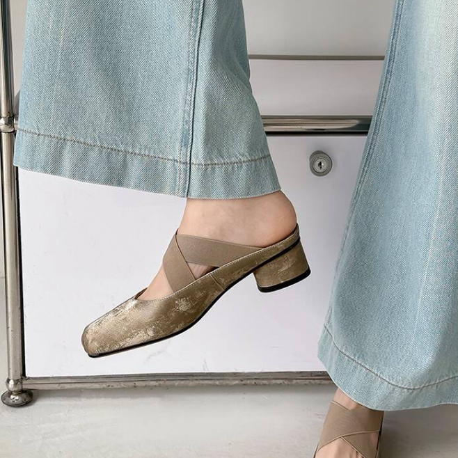 2 reviews for Concert Outfit Genuine Leather Cross Strap Open Toe Mid Heel Square Toe MulesItalian, Footwear Modern istas