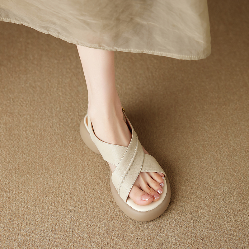 Step into summer style with our Genuine Leather Open Toe Cross Strap Sandals for Women, designed with a thick sole for ultimate comfort and support. The casual round toe design offers a perfect fit, while the elegant cross strap detailing adds a chic touch to any outfit. Whether you’re strolling along the beach or enjoying a casual day out, these sandals are the perfect blend of fashion and functionality. Don’t miss out on this must-have footwear for 2025—add them to your cart today!