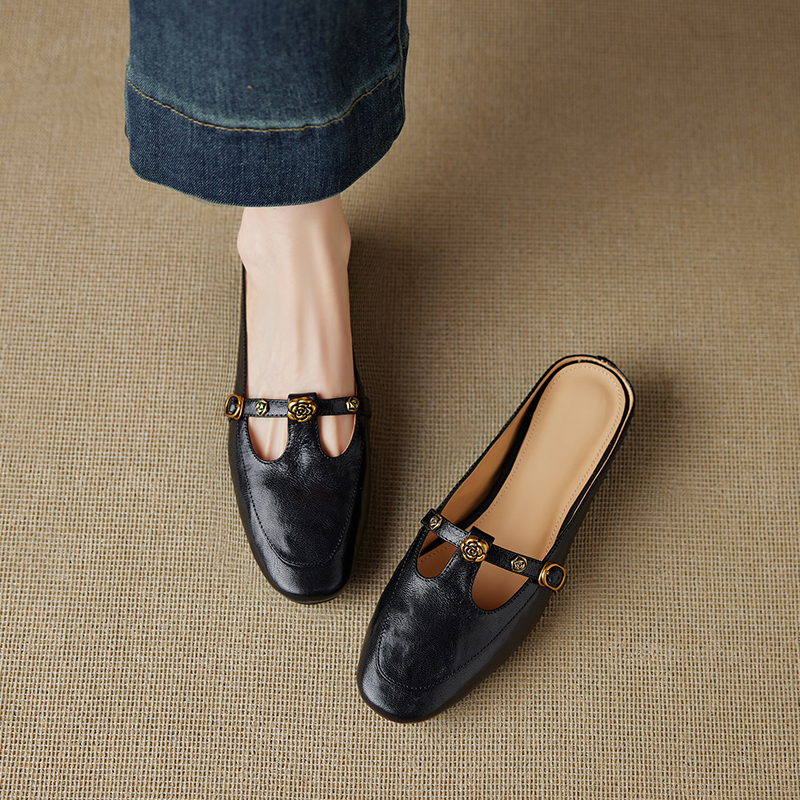 Step into effortless elegance with our Genuine Leather Round Toe Camellia Lazy Slippers for Women, designed for the modern woman who values both comfort and style. These retro summer outdoor slippers feature a chic hidden height boost, ensuring you look and feel your best while enjoying a perfect fit. With their soft leather construction and charming camellia detail, these half slippers are ideal for leisurely strolls or vibrant gatherings. Don’t miss out on enhancing your footwear collection—add these versatile slippers to your cart today!