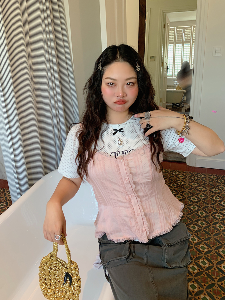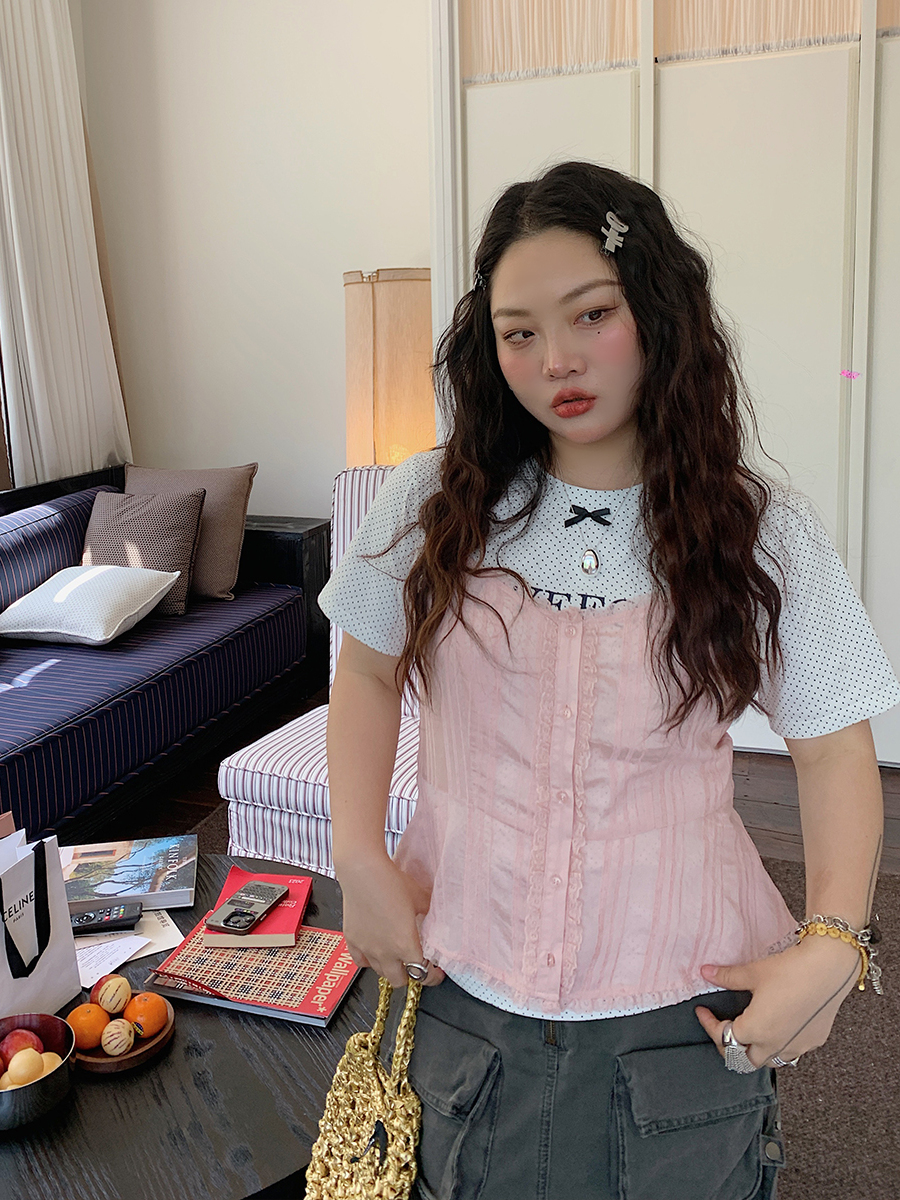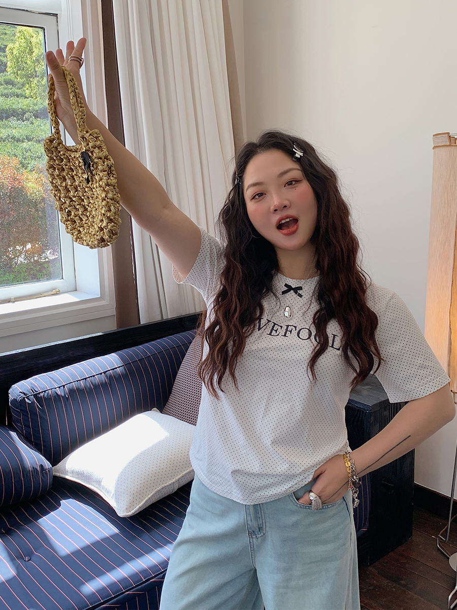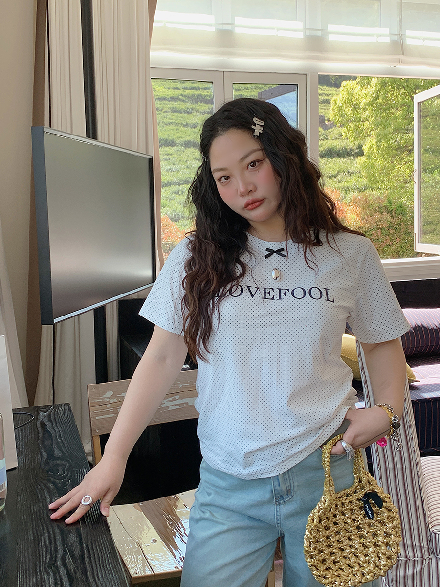 Elevate your summer wardrobe with our Gold Big Bow Polka Dot Short Sleeve T-Shirt, designed exclusively for plus-size fashionistas. This unique top features a playful polka dot pattern and a chic oversized bow that adds a touch of whimsy while offering an age-reducing look. Crafted for comfort and style, its flattering fit will keep you feeling confident all season long. Don’t miss out on this must-have piece—add it to your cart today and embrace effortless elegance!