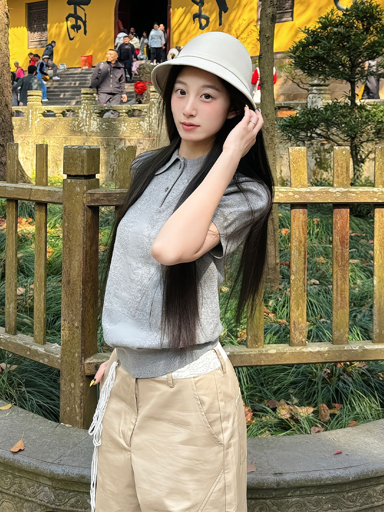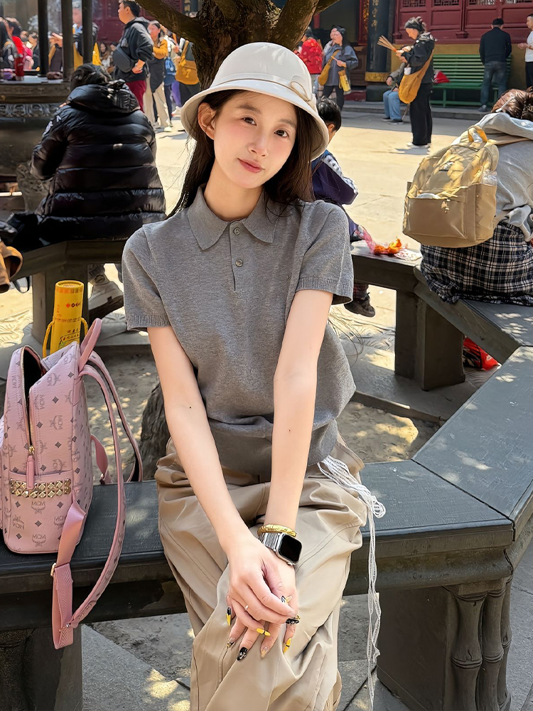 Elevate your summer wardrobe with our Gray Short Sleeve Polo Shirt for Women, designed in a chic American retro style. This knitted T-shirt features a flattering slim fit that hugs your curves while providing ultimate comfort and breathability, perfect for those warm days. With its versatile college style, it pairs effortlessly with shorts or jeans, making it an essential addition to your casual collection. Don’t miss out on this stylish staple—add to your cart today!