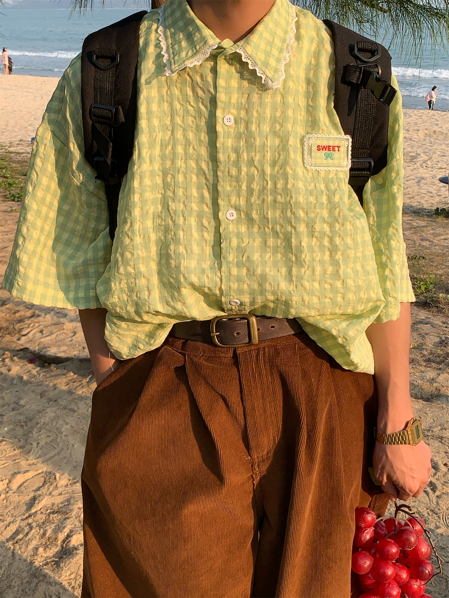 Elevate your summer wardrobe with our Handmade Japanese Retro Plaid Short Sleeve Shirt, designed specifically for women who appreciate effortless style. This loose-fitting top features delightful puff sleeves and exquisite lace trim, providing a perfect balance between comfort and chic fashion. The breathable fabric and playful plaid pattern make it an ideal choice for warm days, ensuring you stay cool and stylish. Don’t miss out on this timeless piece—add it to your cart today and embrace a touch of vintage charm!