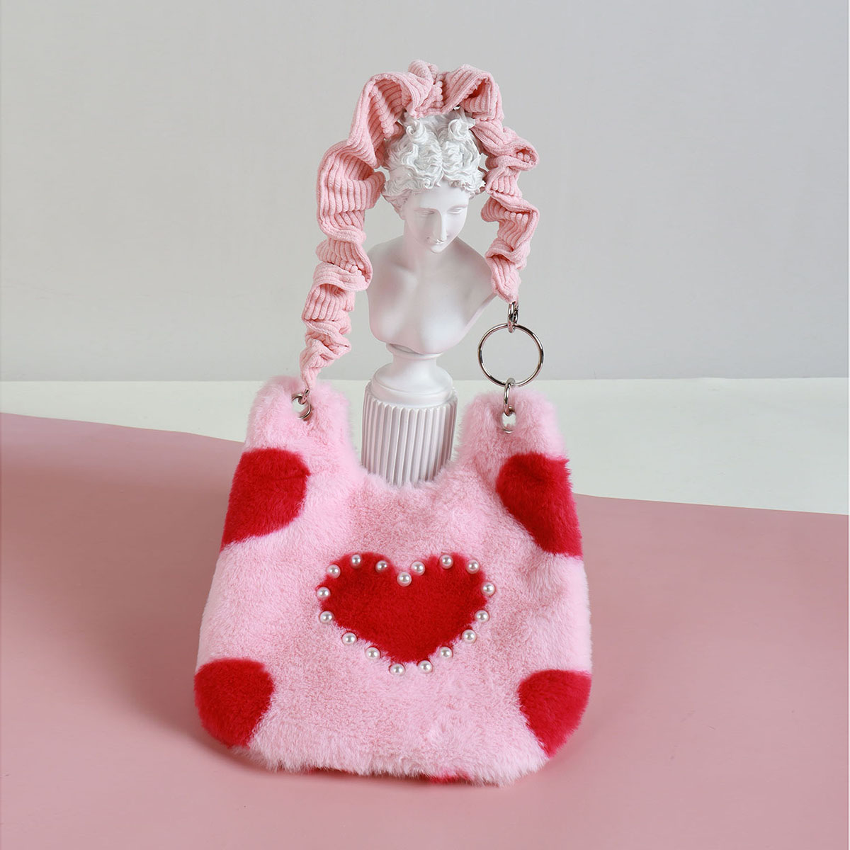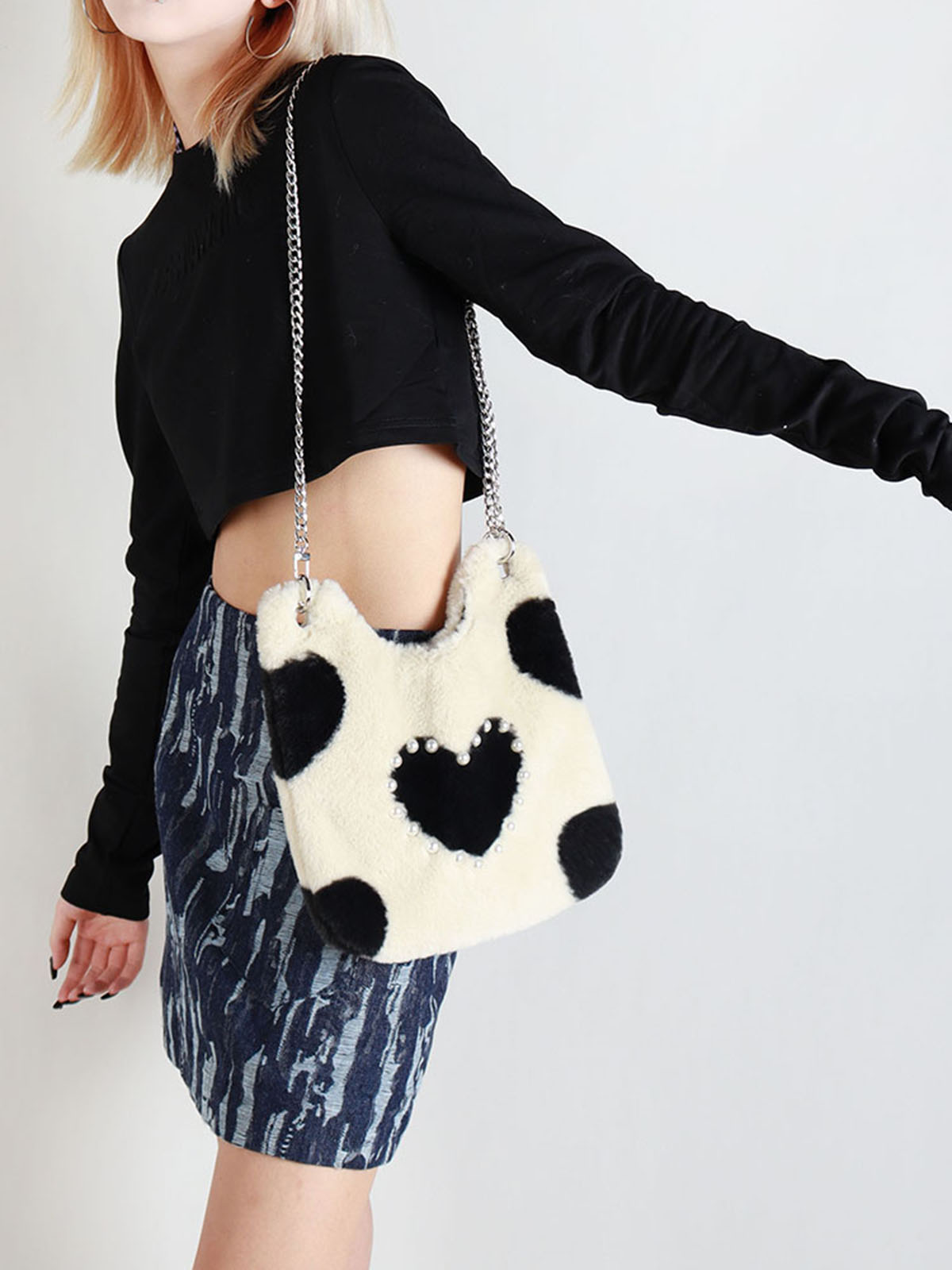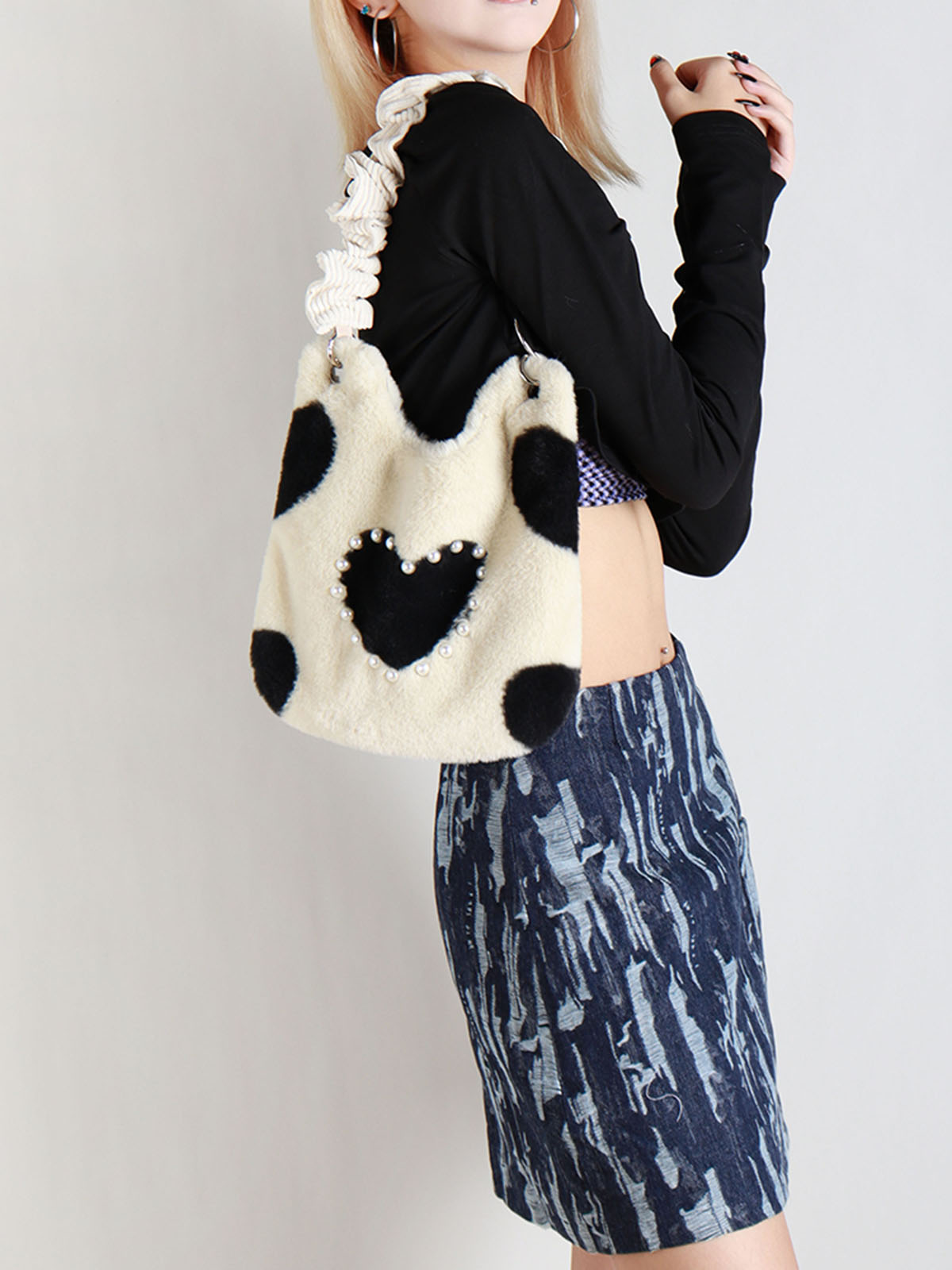 Concert Outfit Heart Shaped Plush Tote Bag Women Cute Casual Shoulder Crossbody BagSweet Cool Autumn Winter