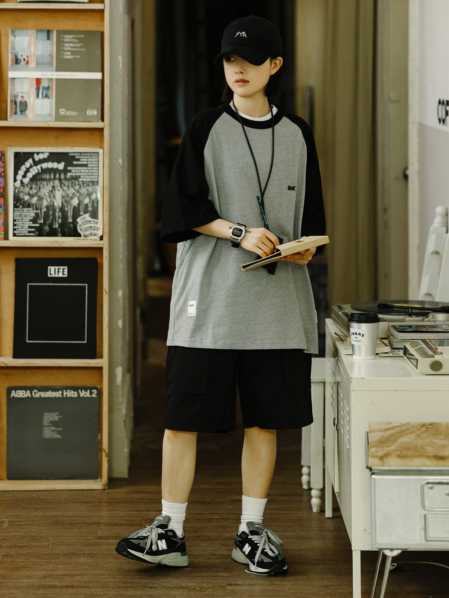 Concert Outfit Heavyweight 280g Patchwork Retro T- shirt Men, Raglan Sleeve Loose Short Sleeve Top, Summer