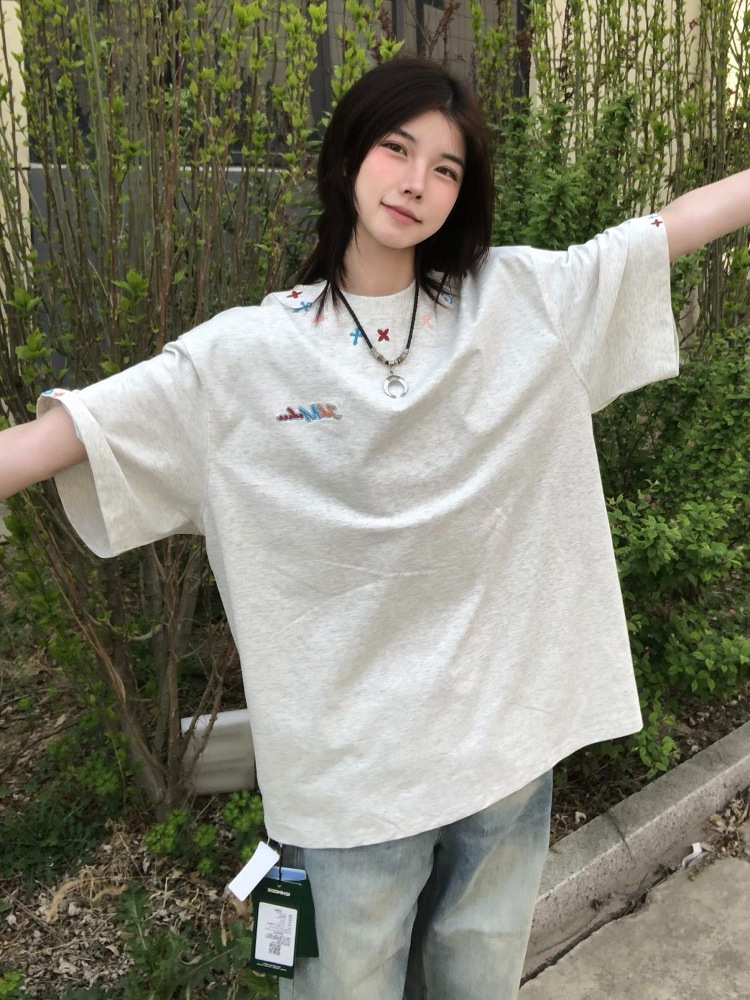Elevate your summer wardrobe with our High-End American Minimalist Embroidered Letter Heavyweight Short Sleeve T-Shirt for Women. This stylish top features a relaxed fit, making it perfect for effortless layering or wearing solo, while the premium heavyweight fabric ensures durability and comfort throughout the season. With its unique embroidered details and contemporary couple’s style, this t-shirt is designed to make a statement. Don’t miss out on this essential addition to your fashion collection—add to your cart today!