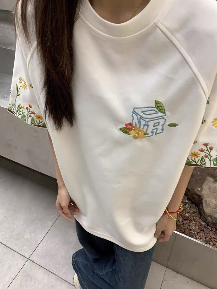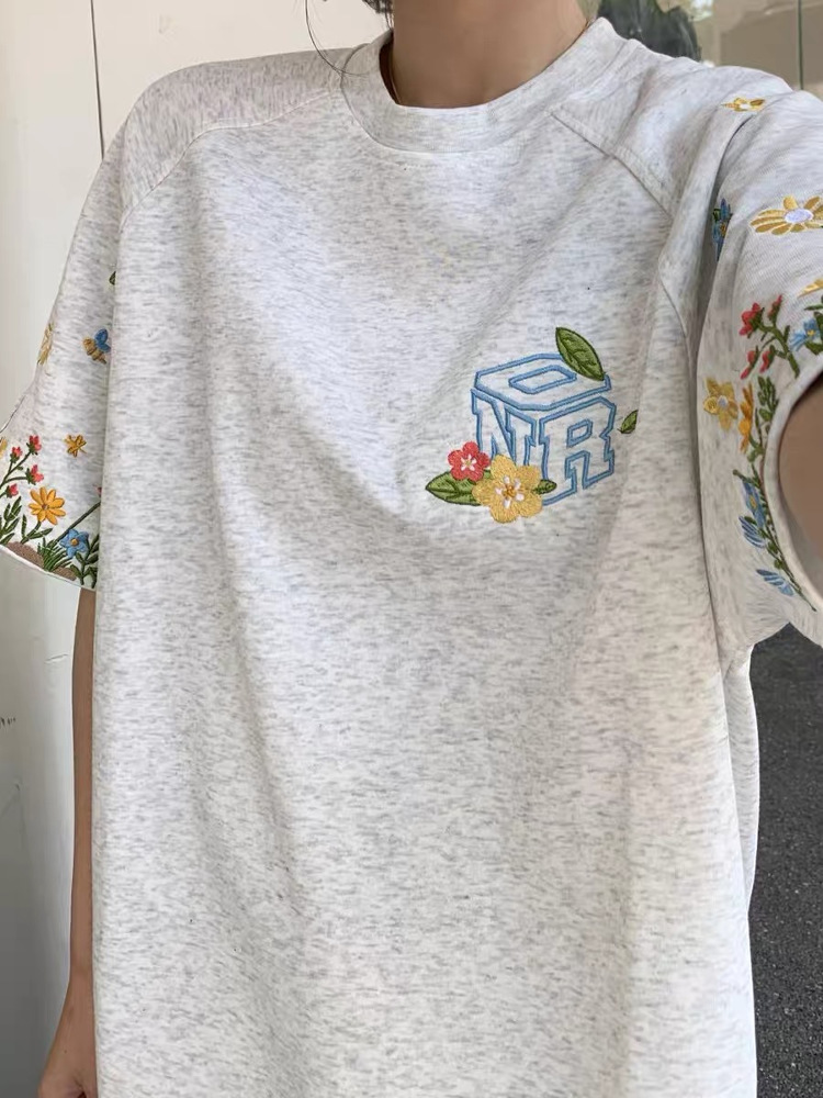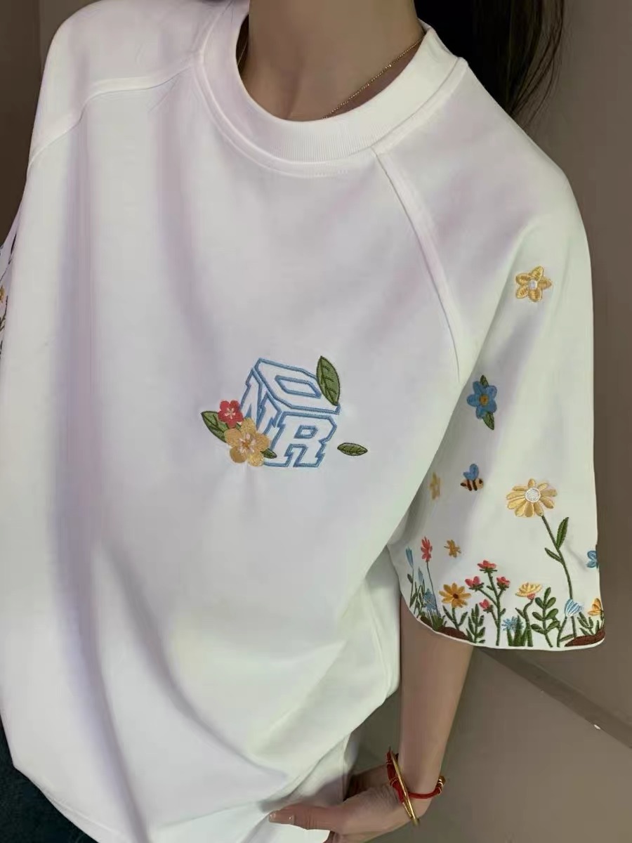 Elevate your summer wardrobe with our High-End Embroidered Floral Letter Short Sleeve T-Shirt for Women. This American style heavyweight raglan top features exquisite floral embroidery that adds a touch of elegance to your casual look, while the relaxed fit ensures all-day comfort. Perfect for pairing with your favorite jeans or shorts, this versatile tee is a must-have for any fashion-forward woman. Don’t miss out on this stylish addition—add to your cart today!