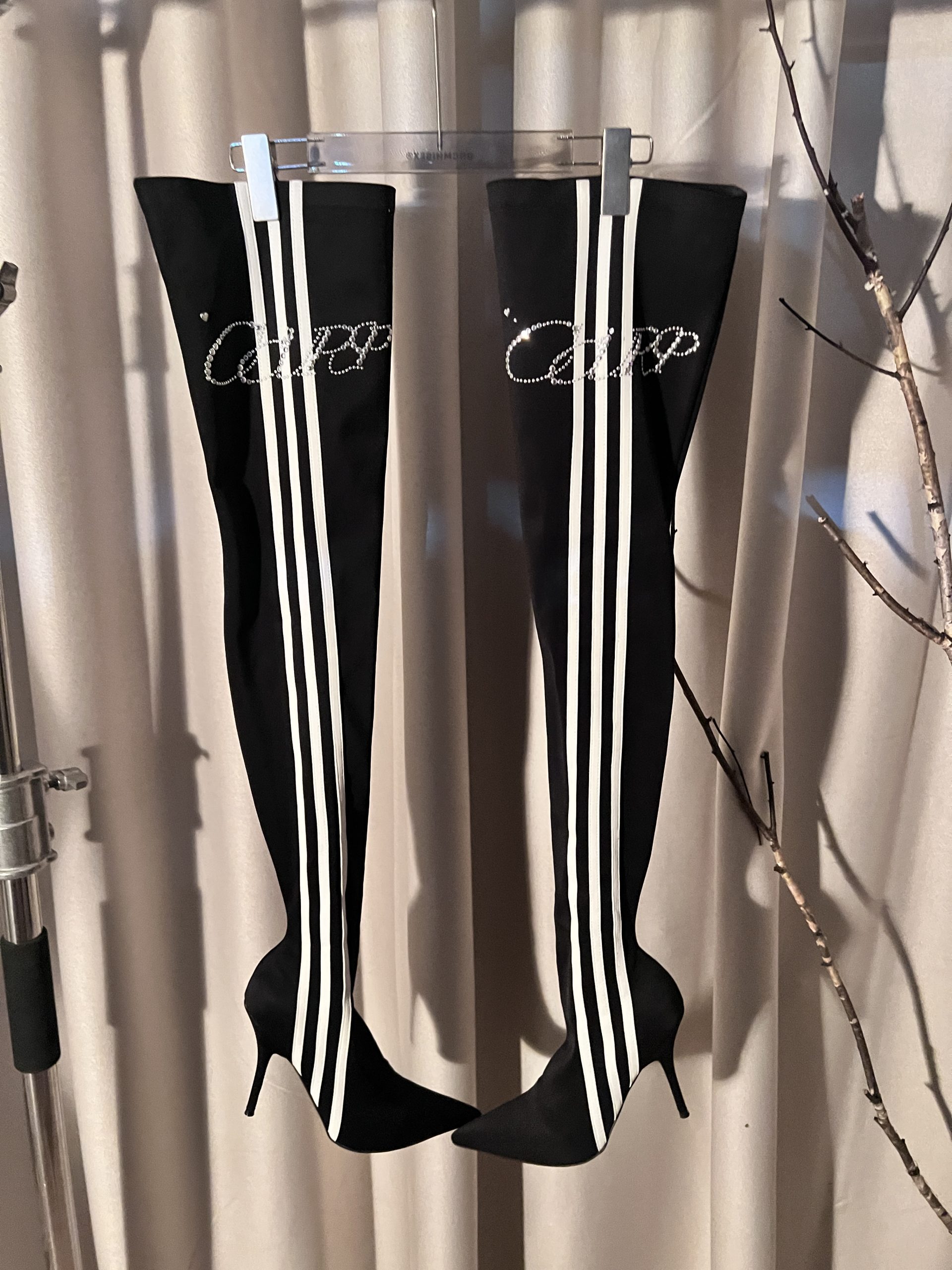 Step into style this autumn and winter with our stunning High Heeled Long Boots for Women. Featuring a slim three stripes design adorned with elegant rhinestones, these boots not only enhance your silhouette but also offer an elastic fit for ultimate comfort. Perfect for any hot girl style, they are a must-have addition to your wardrobe that will elevate any outfit. Don’t miss out on this fashionable staple—add to your cart today and make a statement wherever you go!
