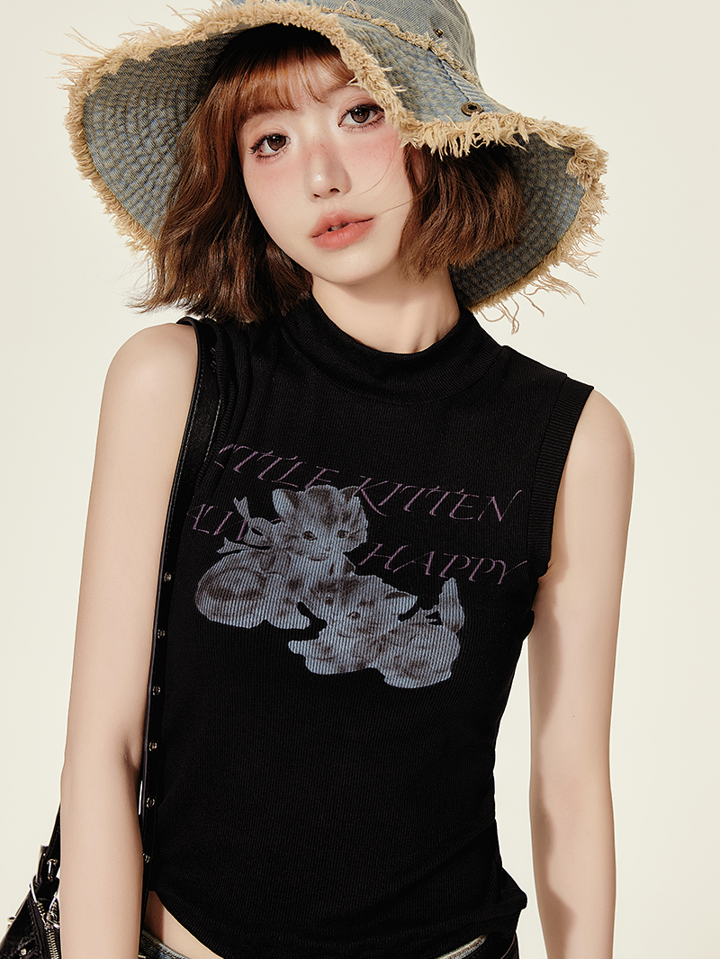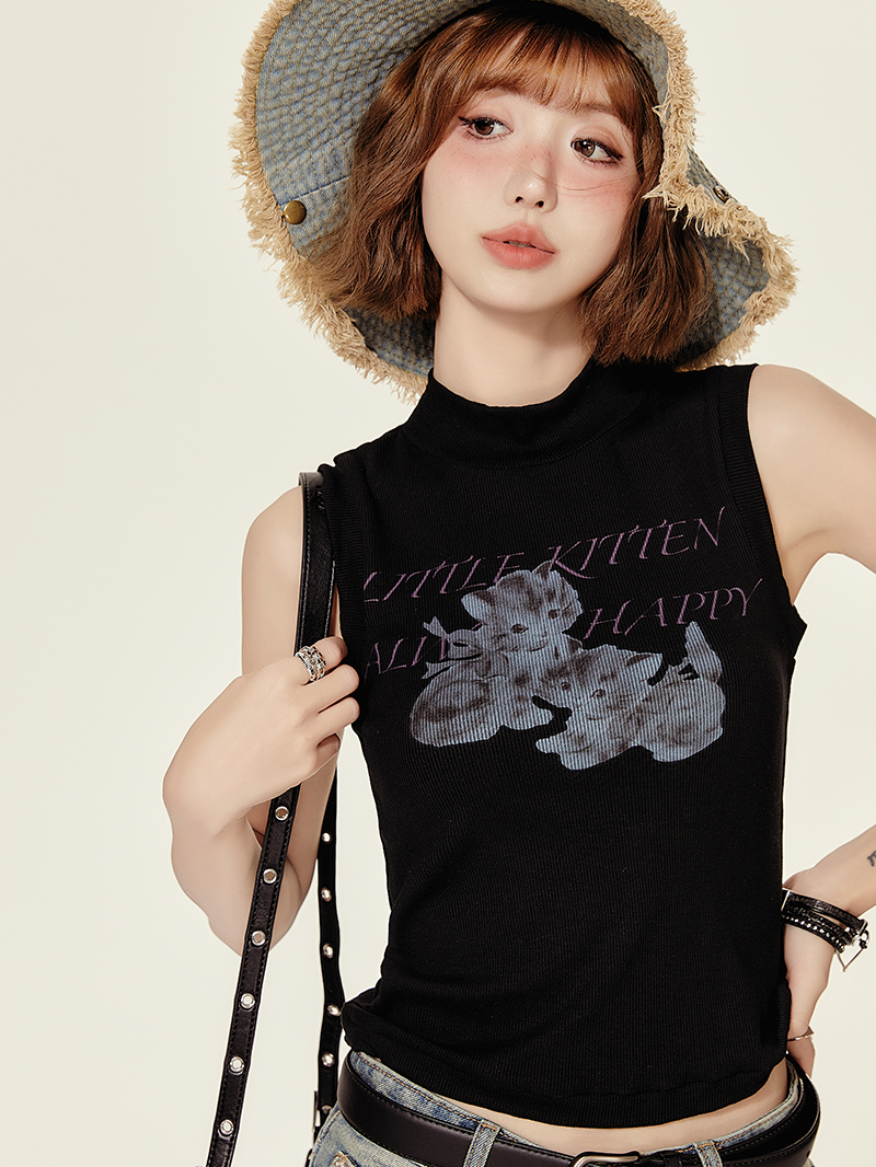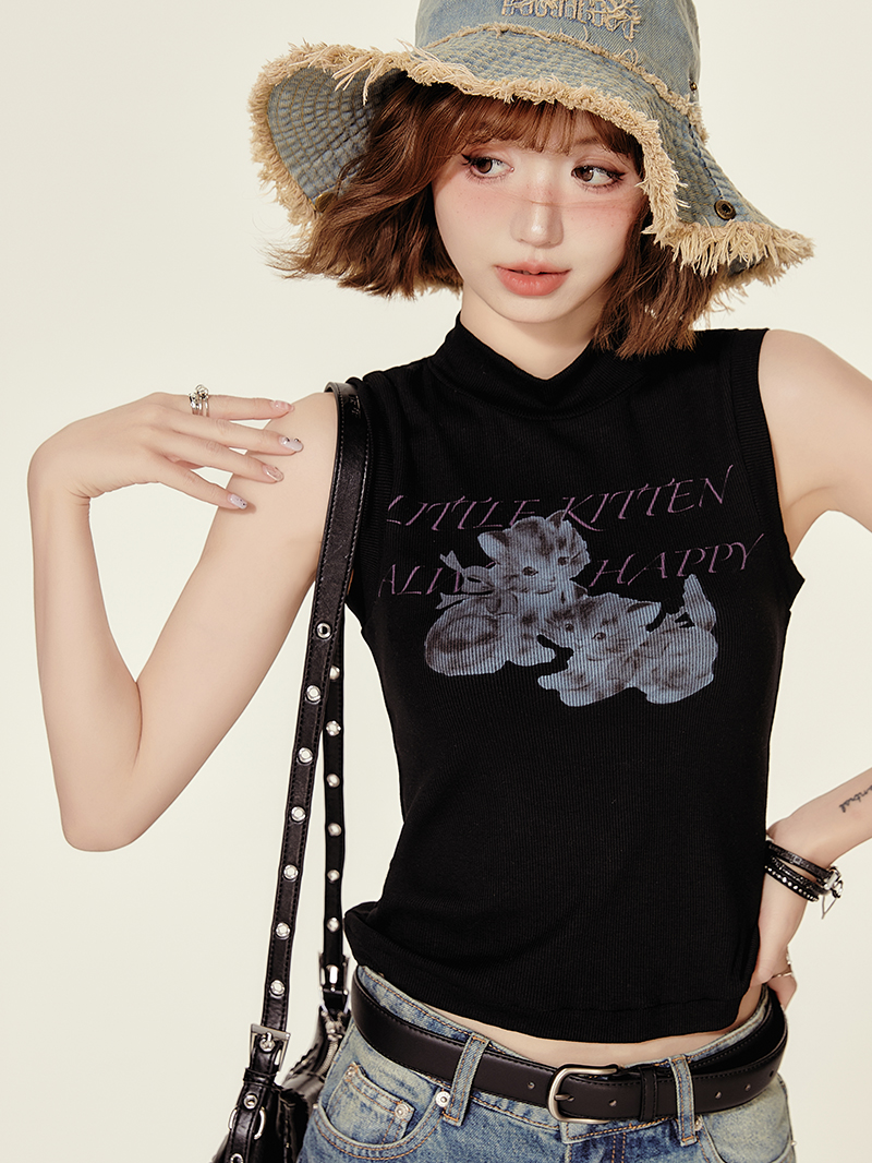 Elevate your summer wardrobe with our High-Neck Printed Black T-Shirt Top for Women, designed for the spicy girl who loves to make a statement. This slim-fit American style vest features trendy prints that effortlessly combine chic aesthetics with ultimate comfort, making it perfect for any occasion, from casual outings to stylish gatherings. Don’t miss out on this must-have piece; add it to your cart today and embrace your unique style!