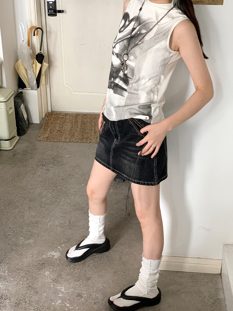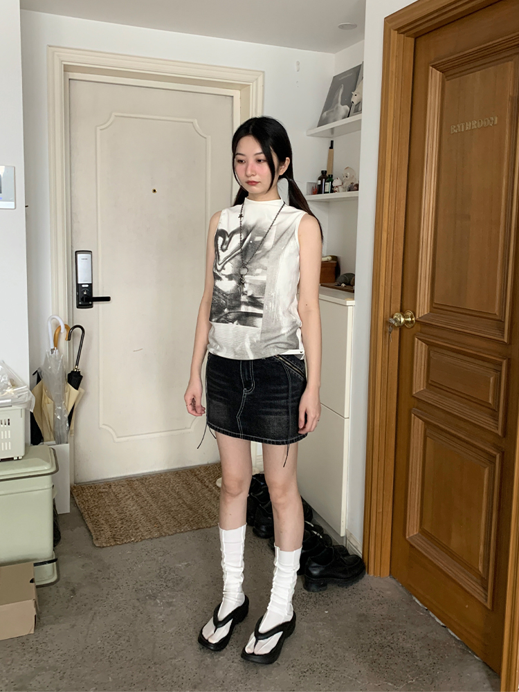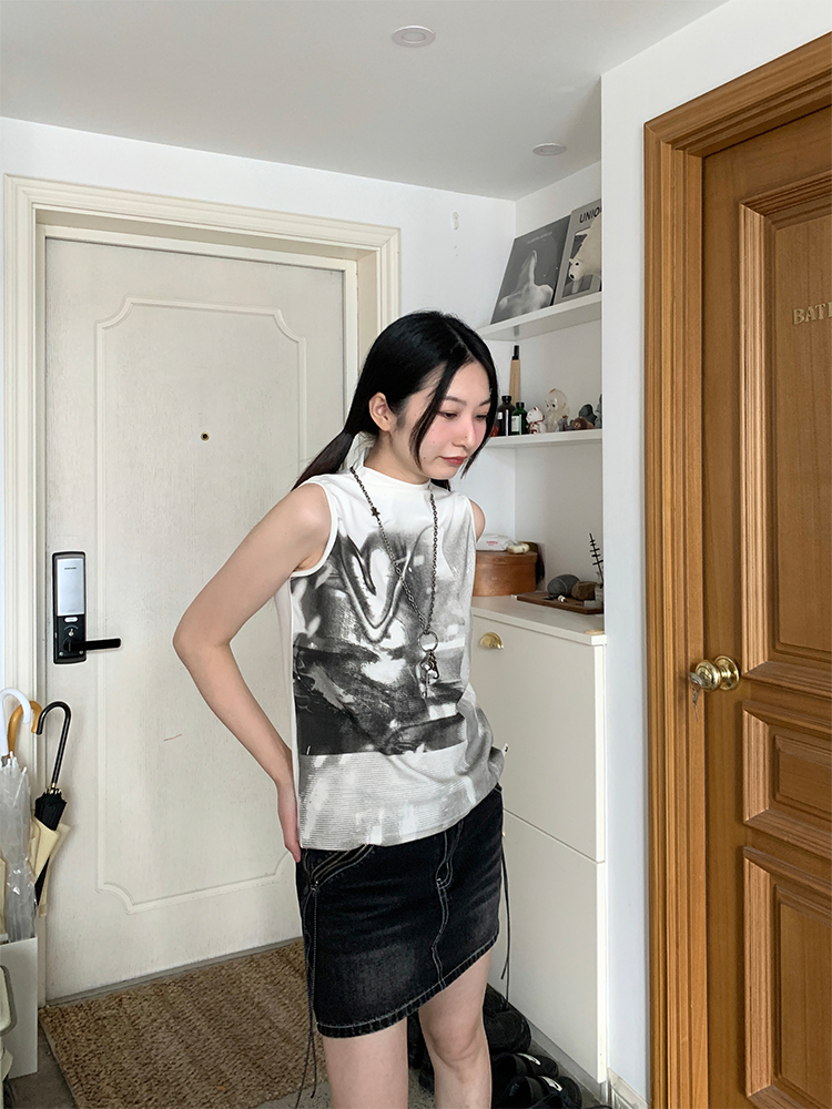 Concert Outfit High Neck Sleeveless Graffiti Tank Top Casual Streetwear Summer, Boho, Urban, pired