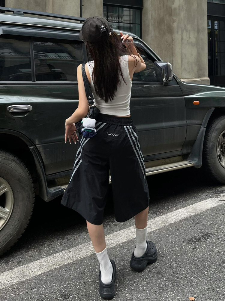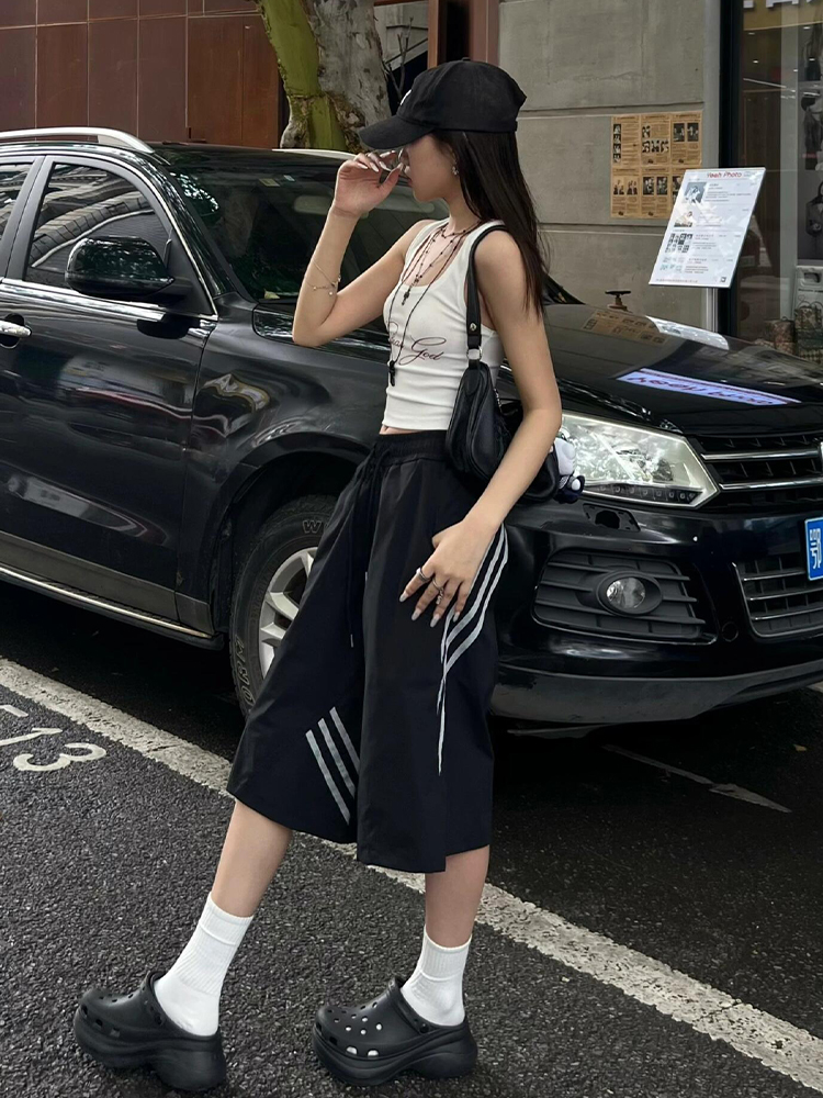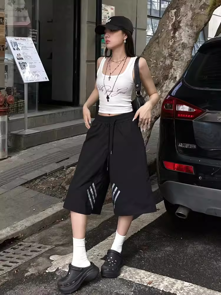 Elevate your summer wardrobe with our High Street Vintage Black Shorts for Women, designed for a stylish yet comfortable fit. These loose-fit, three-stripe cropped wide-leg sports pants offer the perfect blend of fashion and functionality, making them ideal for everything from casual outings to sporty adventures. With their breathable fabric and trendy design, you’ll stay cool and chic all season long. Don’t miss out on these essential summer shorts—add to your cart today!