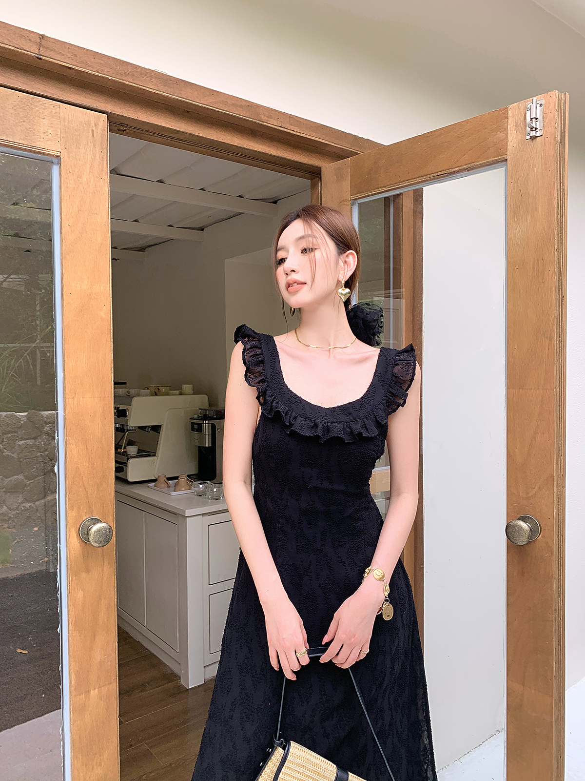 4 reviews for Concert Outfit High Waisted Black Floral Chiffon Long Dress Square Neckline Summer
