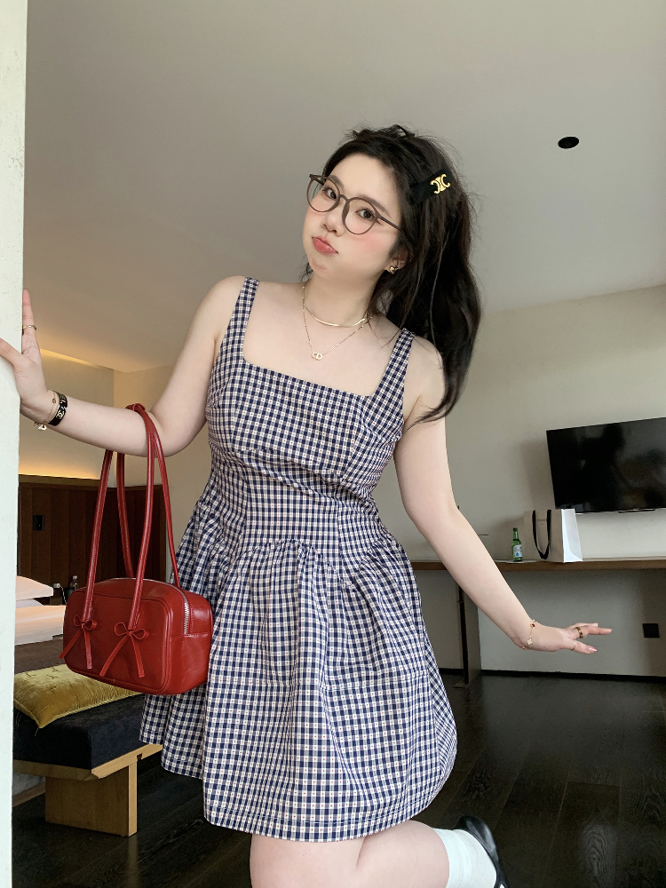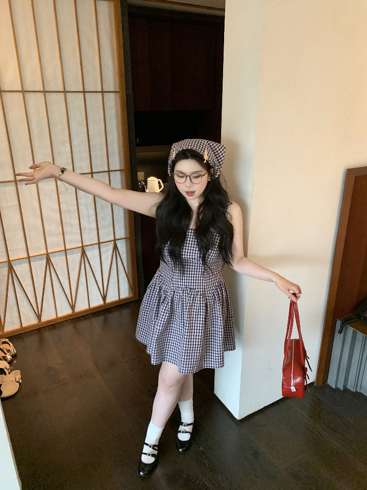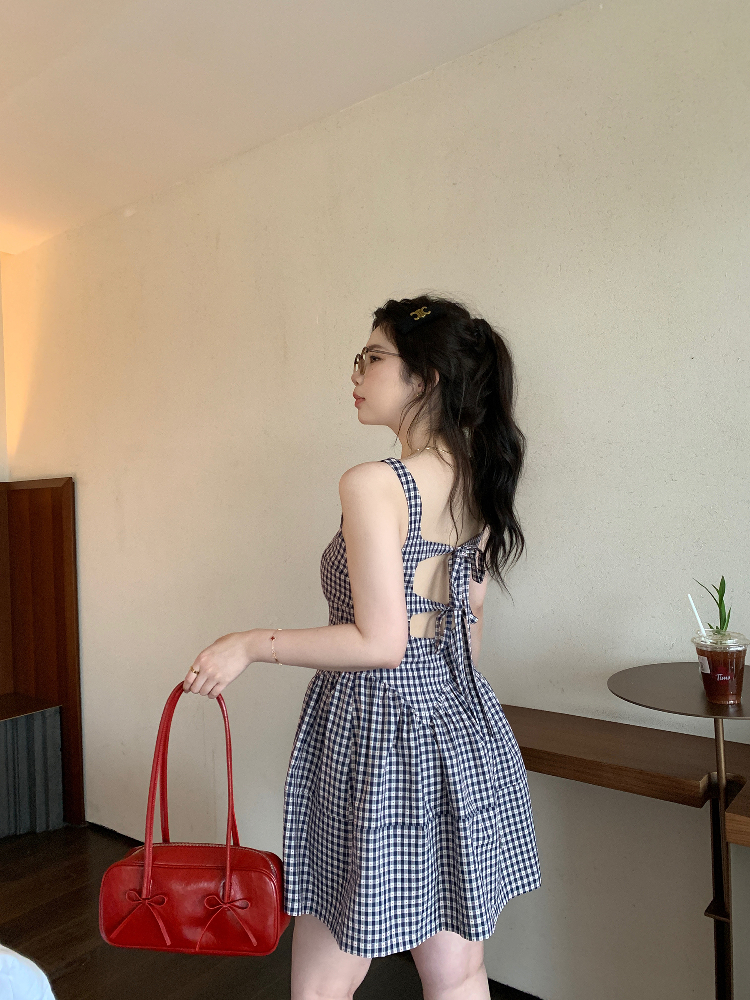 Concert Outfit High Waisted Plaid Dress Backless Bow, Vintage Romantic, Carefree Fit, Y2K Lovers