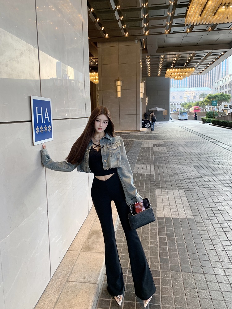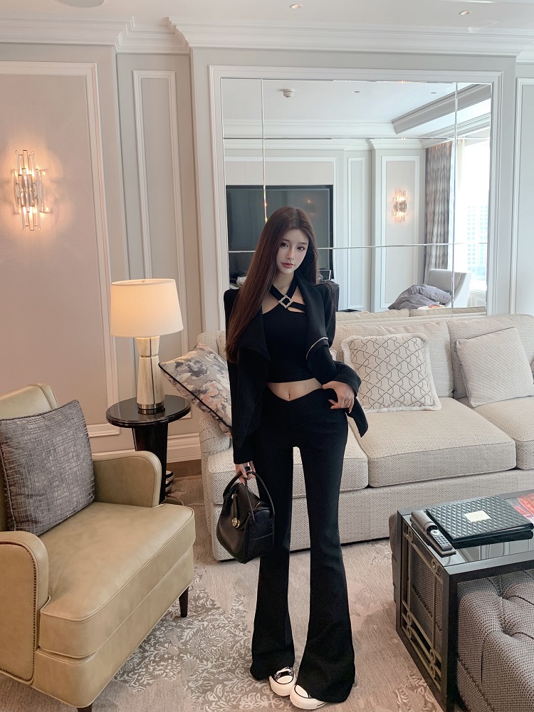 Elevate your wardrobe with our High-Waisted Slim Black Floor-Length V-Waist Slightly Flared Pants, designed for the modern woman who embraces trendy Y2K style. These flattering trousers feature a high-waisted fit that accentuates your silhouette while the slightly flared hem adds a touch of sophistication to any outfit. Perfect for day or night, these versatile pants are sure to become your new go-to. Don’t miss out on this essential piece—add to your cart today and experience the perfect blend of comfort and style!