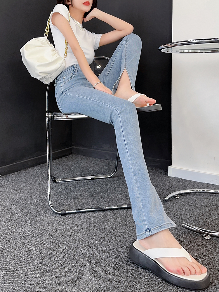 Concert Outfit High Waisted Slim Fit Stretchy Skinny Jeans Side Slits Women Lightweight Fabric, Autumn, Spring