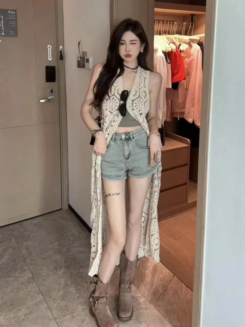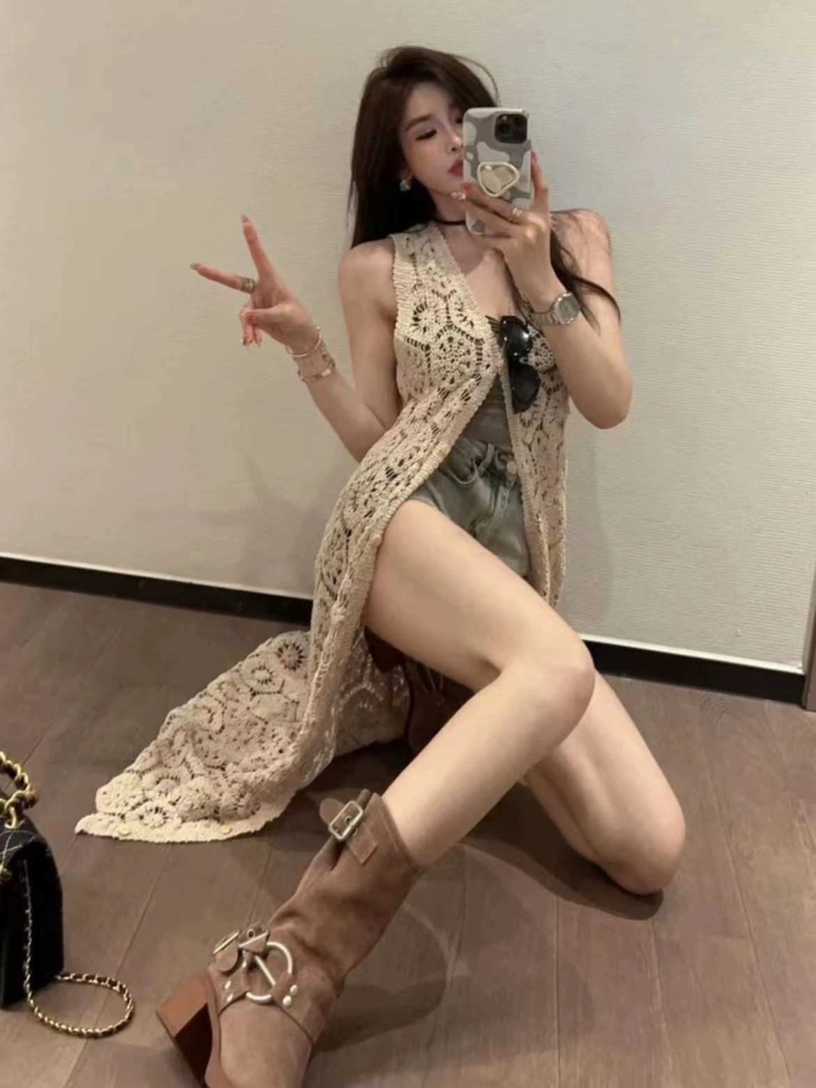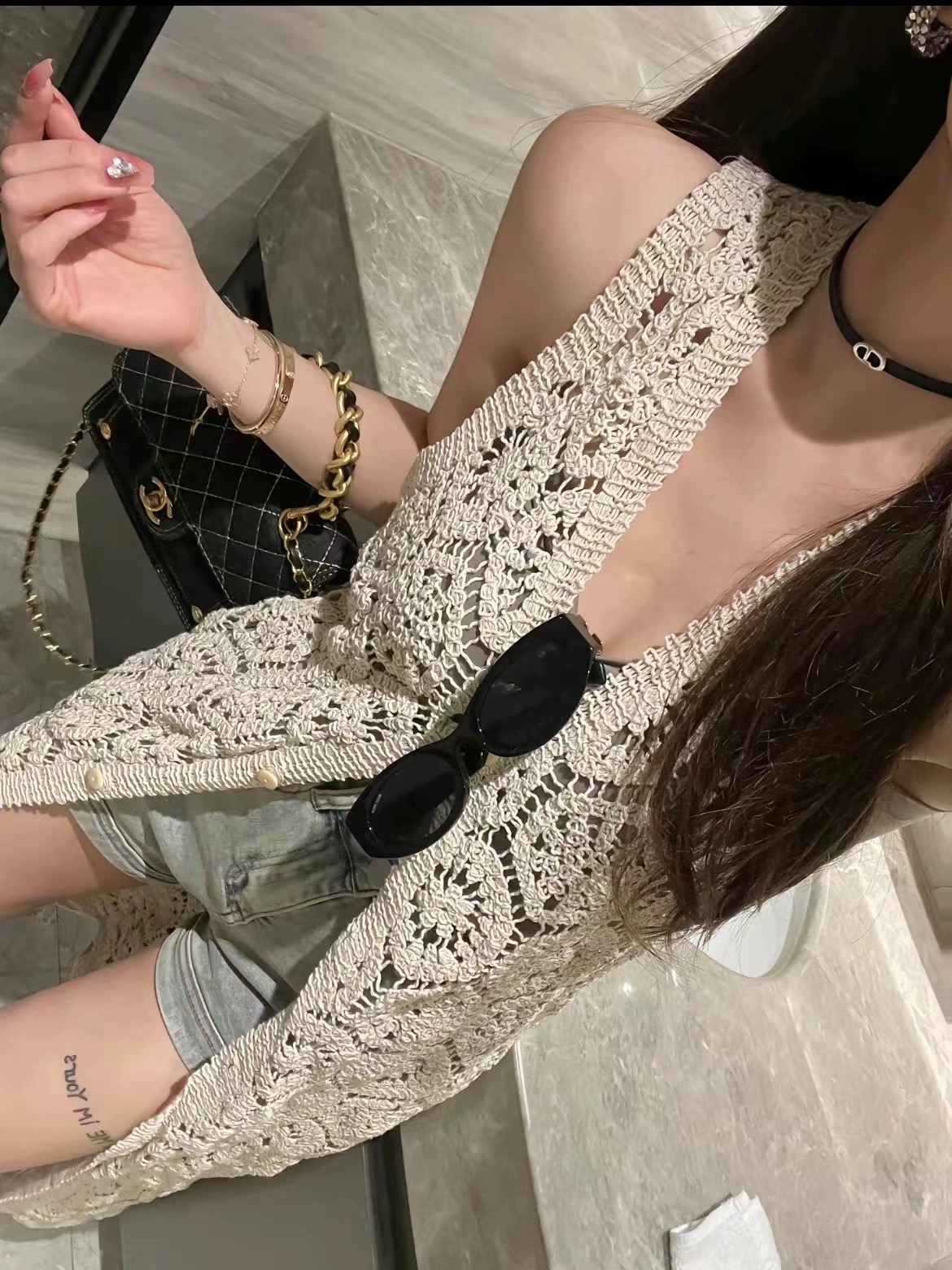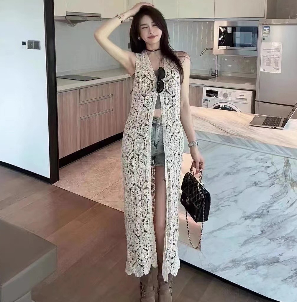 Elevate your beach vacation wardrobe with our stunning Hollow-Out Vest Dress in Ice Silk. This women’s thin knitted long cardigan features an elegant layered style, perfect for adding a touch of sophistication to your summer outfits. The lightweight fabric ensures a comfortable fit, while the hollow-out design provides breathability and a chic look. Embrace effortless style and versatility—add this must-have piece to your cart today!