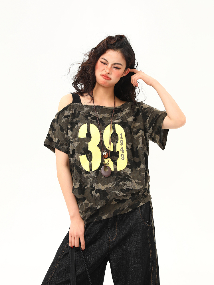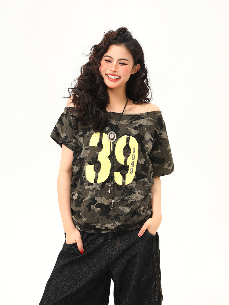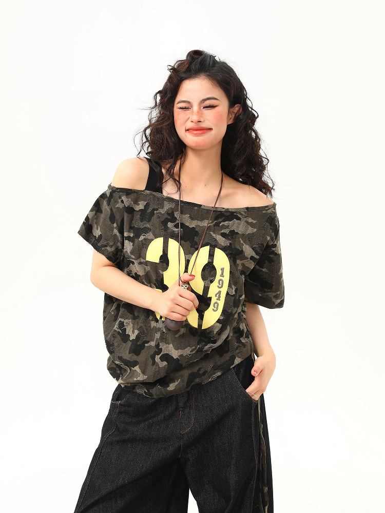 Transform your summer wardrobe with our Hot Girl Off-Shoulder Camouflage Letter T-Shirt for Women! This trendy slim-fit short crop top features a stylish drawstring design that accentuates your silhouette while providing ultimate comfort. Perfect for casual outings or a day at the beach, this eye-catching piece effortlessly combines fashion and fun. Don’t miss out on this must-have addition to your collection—add it to your cart today!