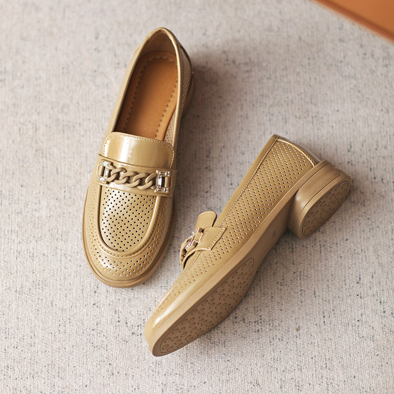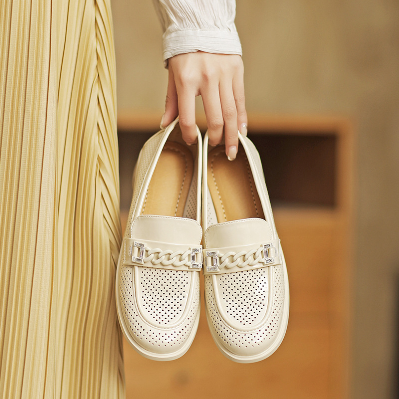 Concert Outfit Italian Hollow Genuine Leather Loafers Soft Soled, Non Fatiguing Flats, 2.5 cm Heel Y2K Footwear