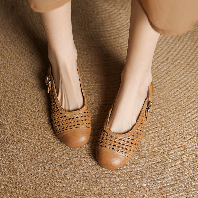 Step into summer elegance with our Italian Woven Hollow-Out Open-Toe Sandals for Women, crafted from exquisite genuine leather for a luxurious feel. These stylish flats feature a breathable design that keeps your feet cool while effortlessly complementing skirts and casual outfits. Experience the perfect blend of comfort and chic fashion—add these must-have sandals to your cart and elevate your warm-weather wardrobe today!