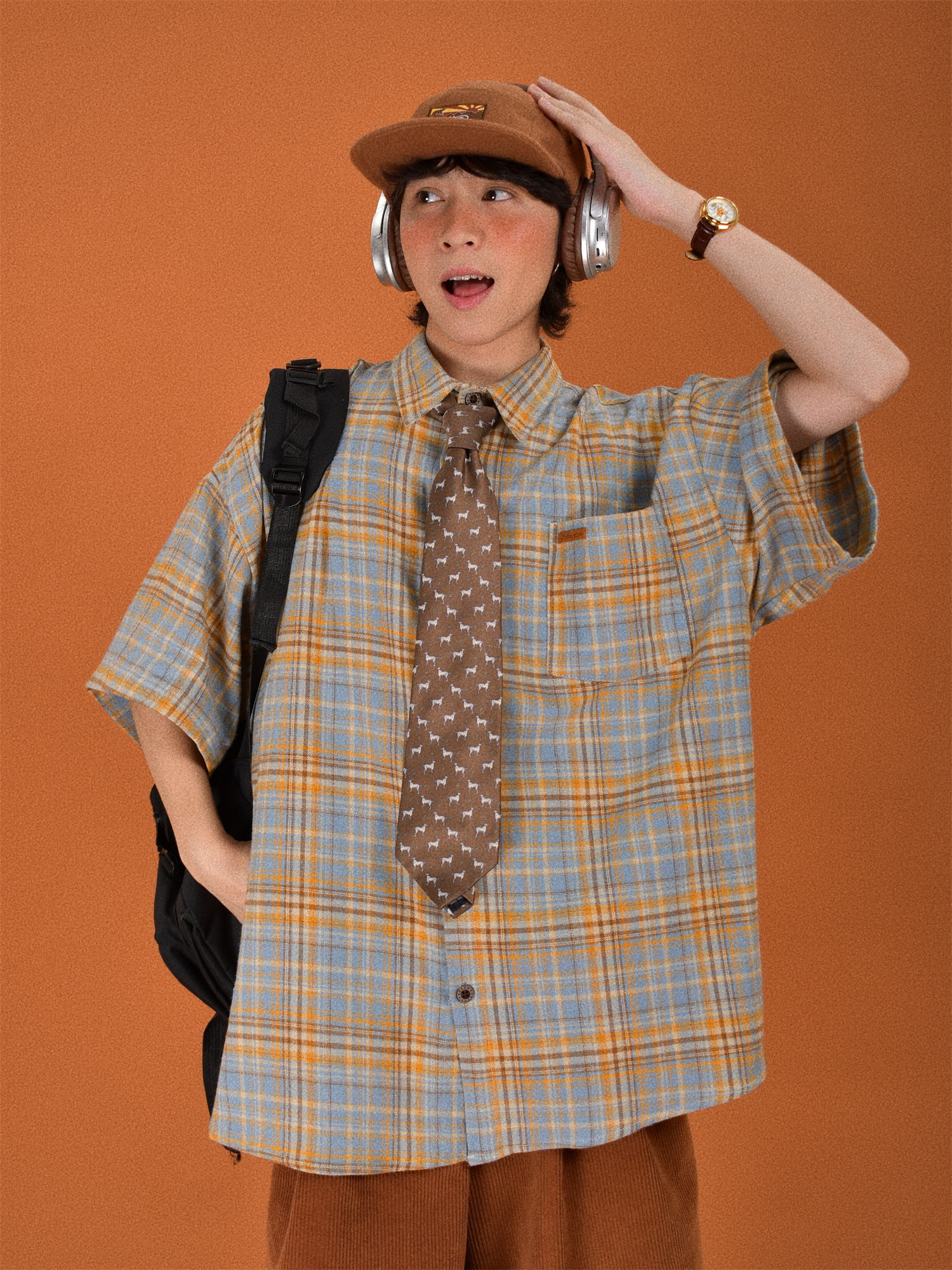 Stylish Concert Outfit: Retro Plaid Short Sleeve Shirt for Men and Women