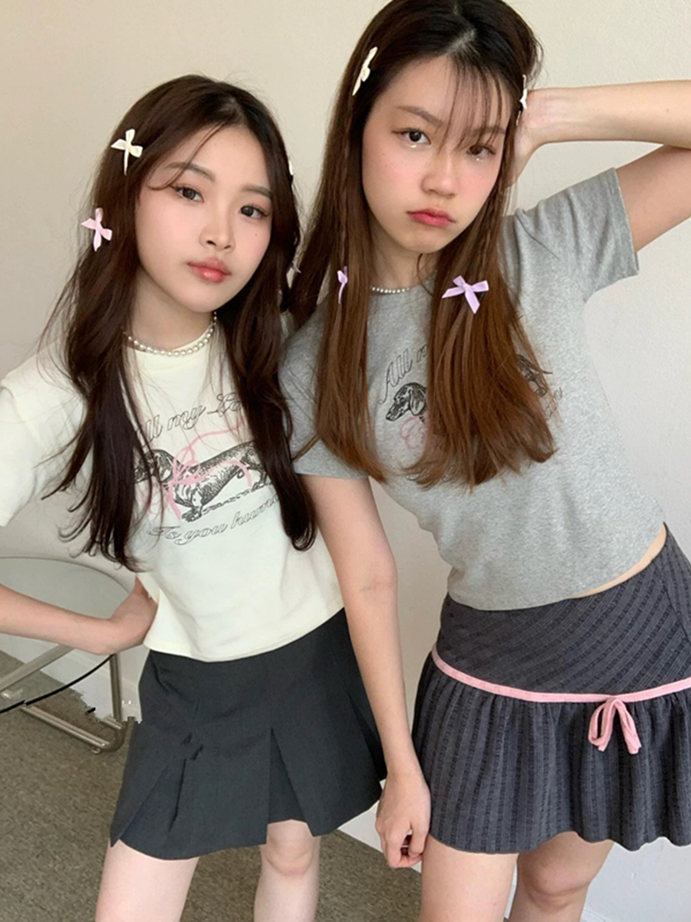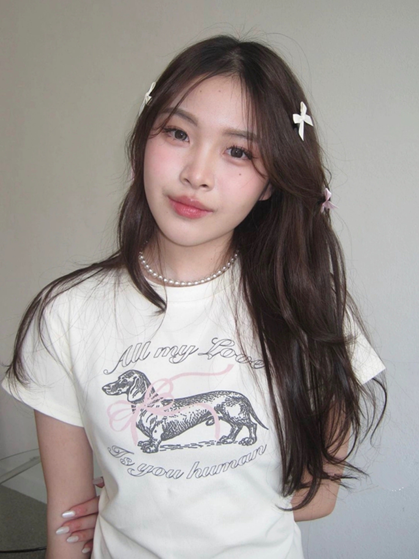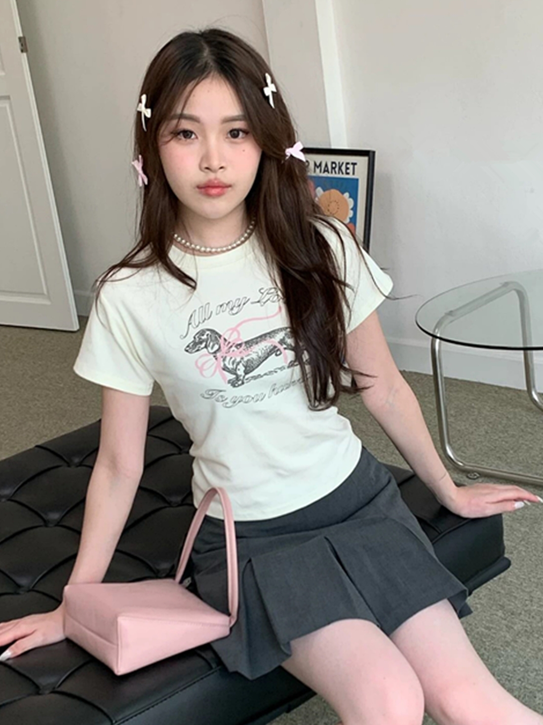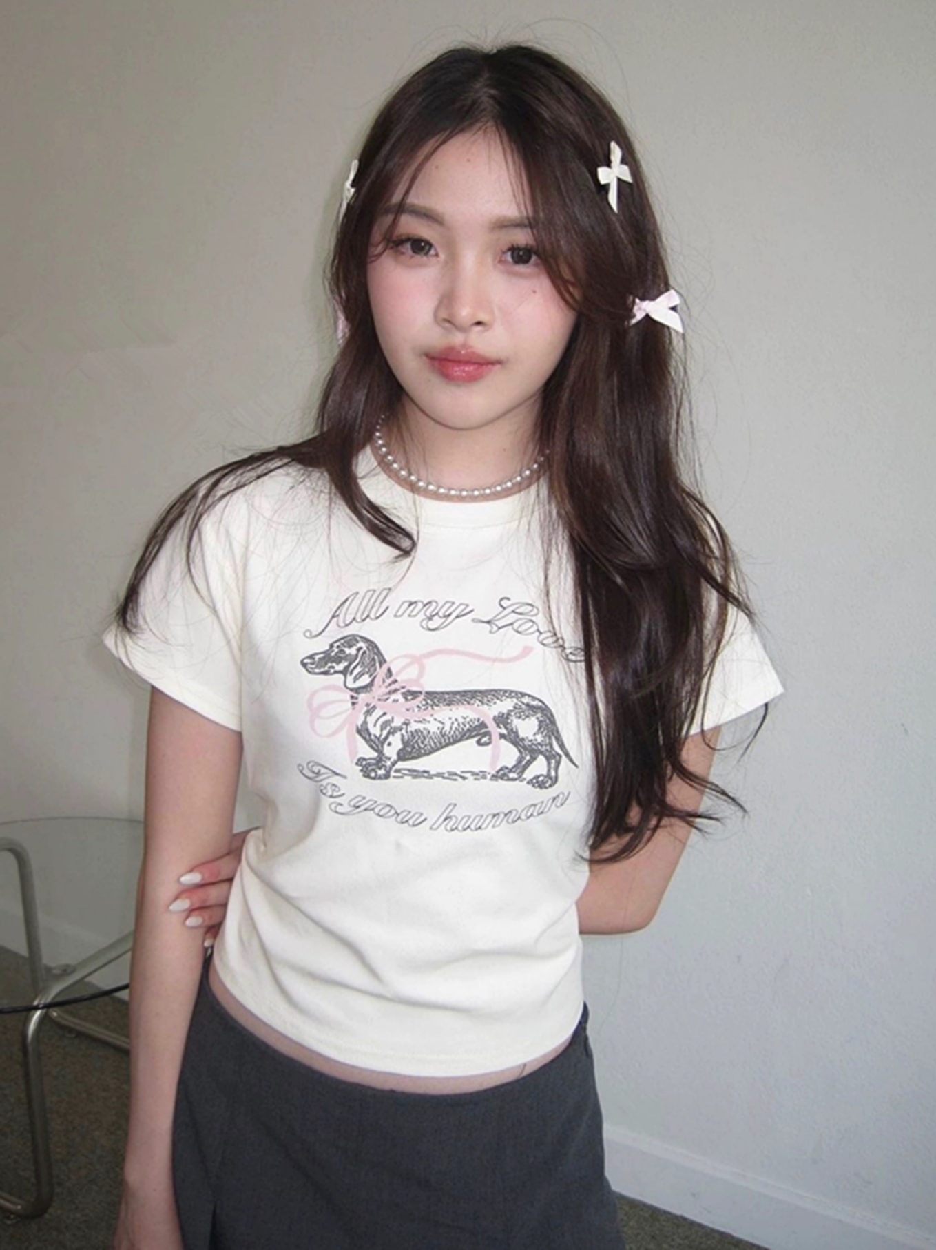 Concert Outfit Korean Bow Tie Sausage Dog Print Slim Fit Short Sleeve T- shirt a YouthLook