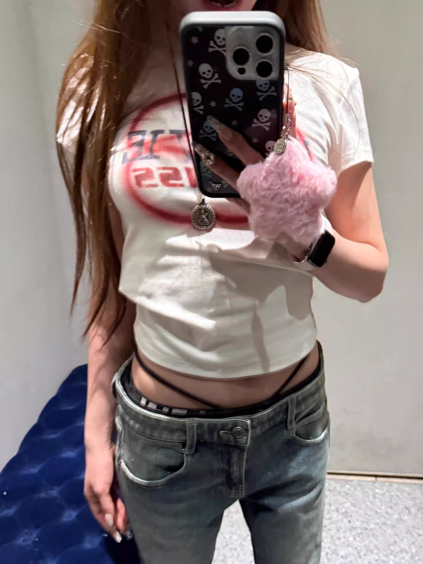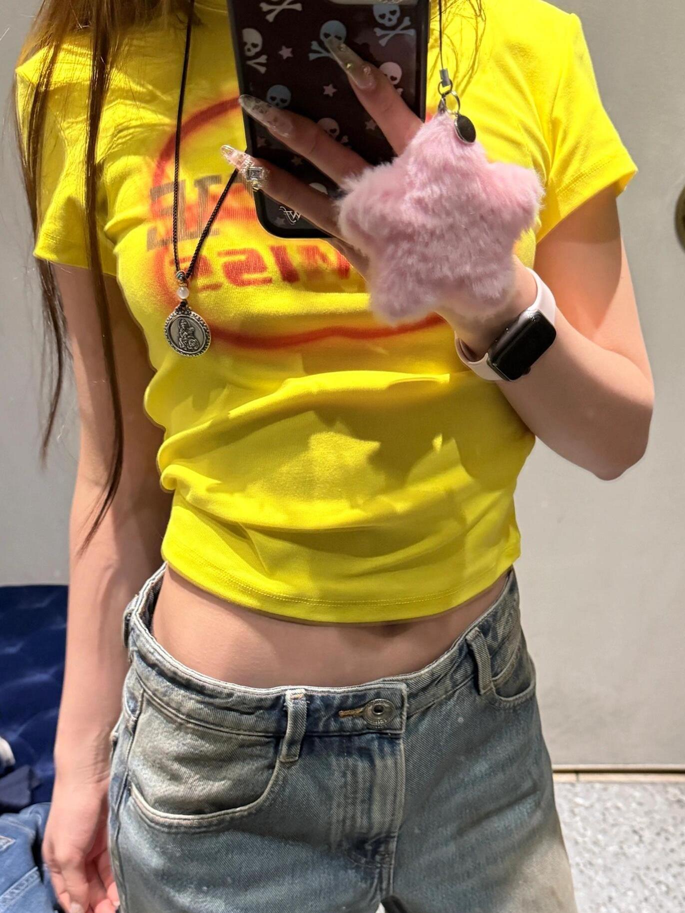 Concert Outfit Korean Letter Print Fitted Short Sleeve Cotton T- shirt Women High Stretch Slim Fit