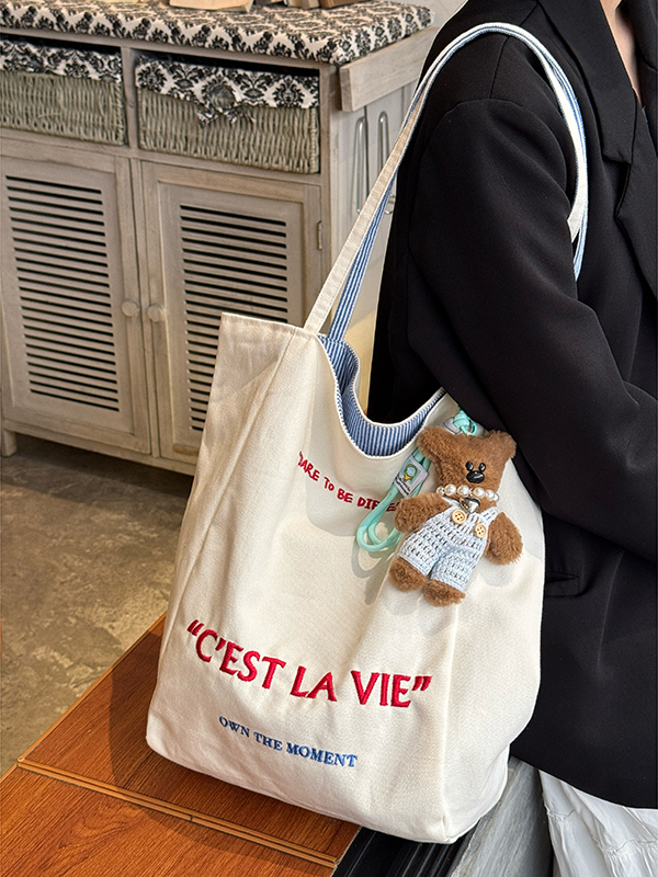 Elevate your style with our Korean Style Double-Sided Embroidered Canvas Shoulder Bag, designed for the modern woman on the go. This large capacity tote features chic striped patterns and intricate embroidery, making it the perfect accessory for commuting or casual outings. With its durable canvas material and spacious interior, you’ll have room for all your essentials while staying effortlessly fashionable. Don’t miss out on this versatile piece—add it to your cart today!