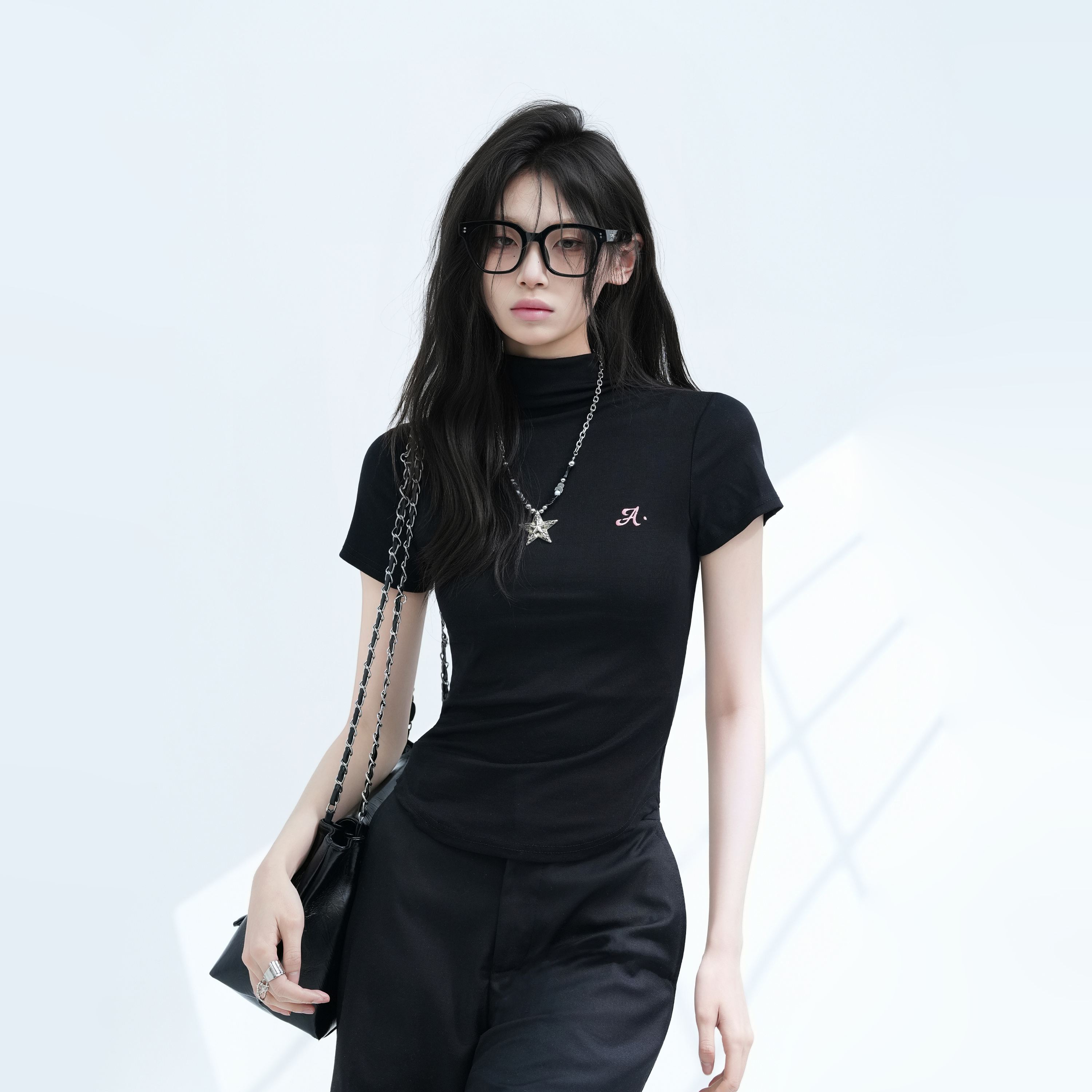 Elevate your wardrobe with our Korean-Style High-Neck Embroidered Short Sleeve T-Shirt, designed for the modern woman who embraces spicy Y2K fashion. This trendy fitted top features intricate embroidery that adds a unique flair, perfect for making a statement at any event. With its comfortable fit and stylish high-neck design, this t-shirt is ideal for layering or wearing on its own for a chic look. Don’t miss out on this must-have piece—add it to your cart today and step into the spotlight!
