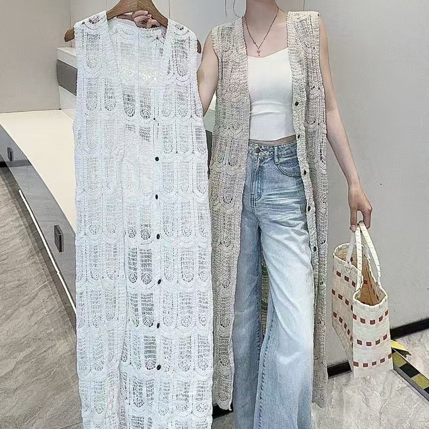 Elevate your wardrobe with our Korean-Style Lace Hollow Knitted Cardigan, a stunning vintage versatile long vest top perfect for both vacation adventures and everyday elegance. Crafted with delicate lace details and a flattering fit, this cardigan effortlessly adds a touch of charm to any outfit, whether layered over a casual tee or paired with a chic dress. Experience the perfect blend of style and comfort—add this essential piece to your collection today and embrace a fashionable look all season long. Shop now!