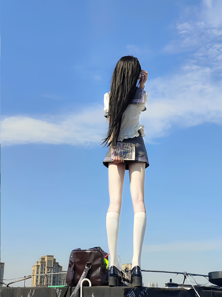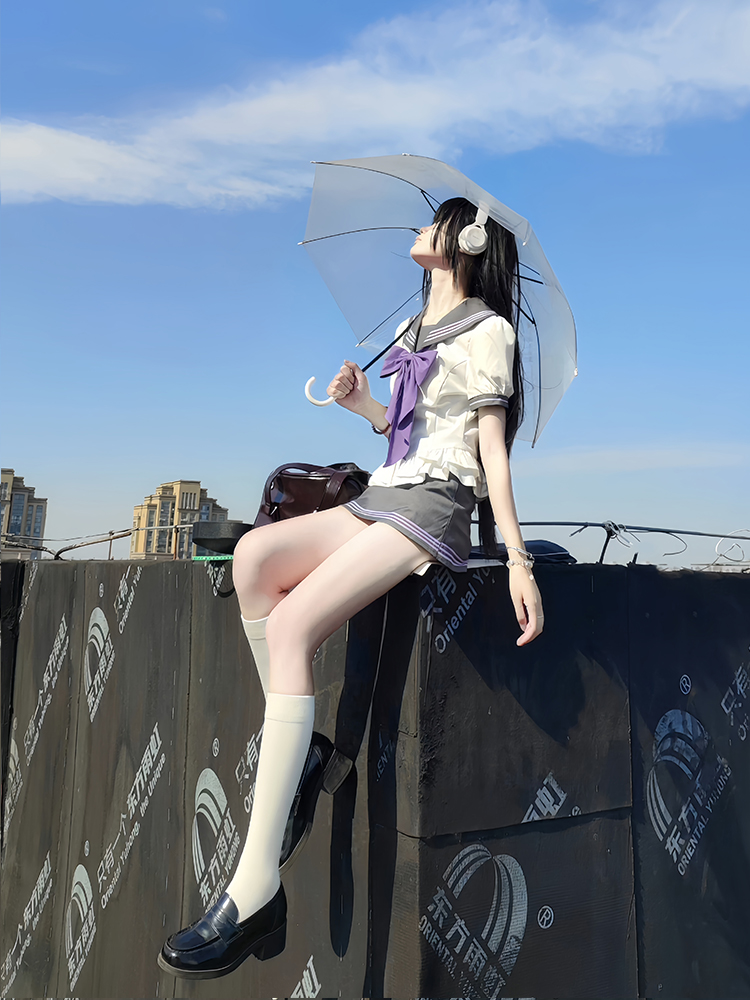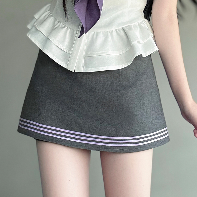 Color | Gray and white outfit (jacket + skirt + bow tie), Gray and white top with a bow tie, Gray skirt |