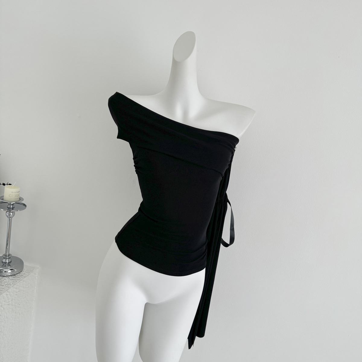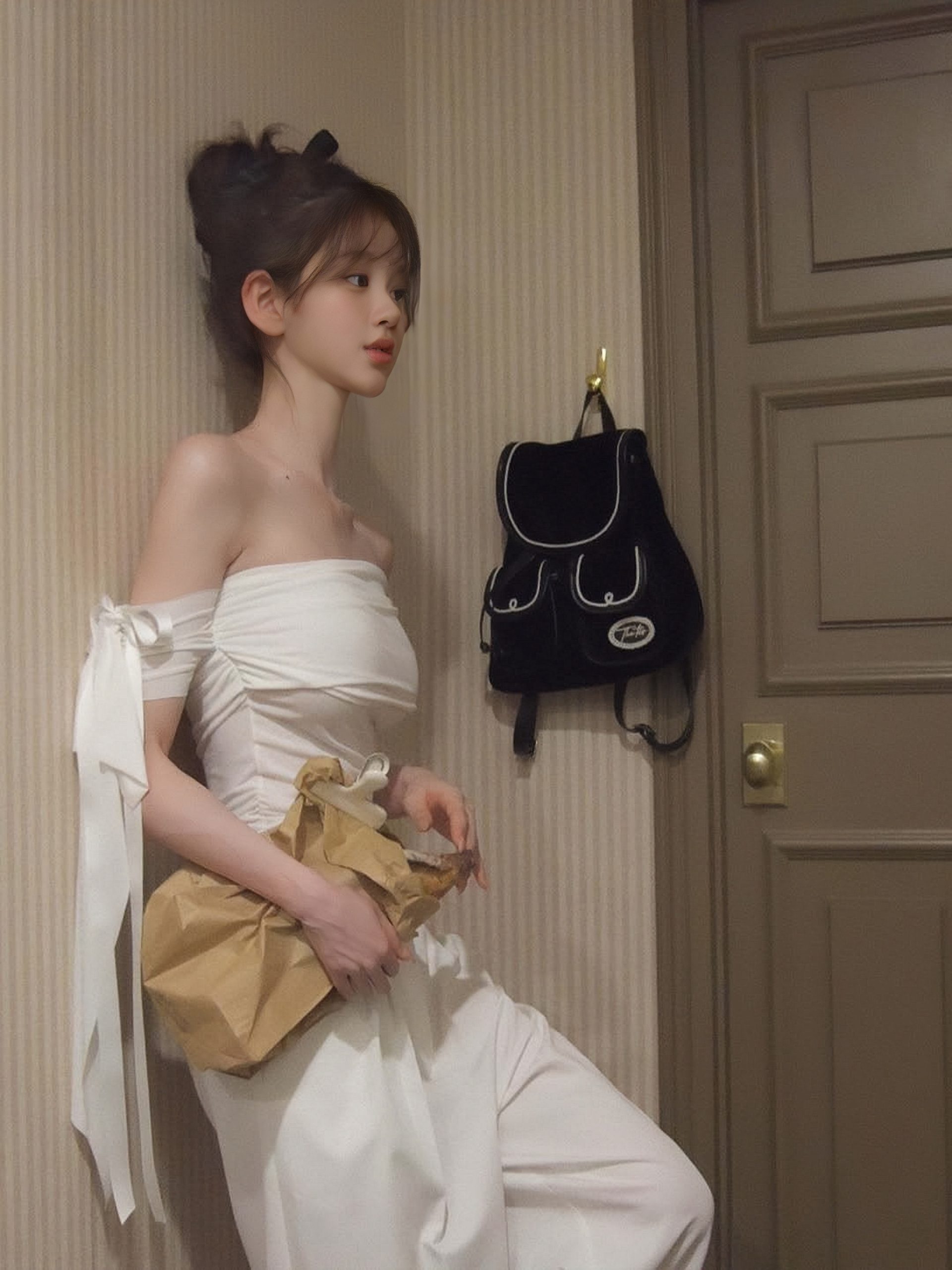 Concert Outfit Korean Women One Shoulder Ruffle Lace Short Sleeve Summer Holiday White Top tagram Ready