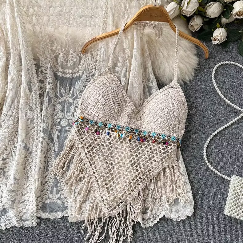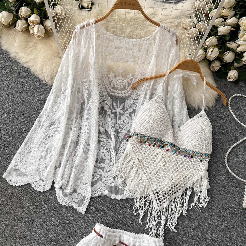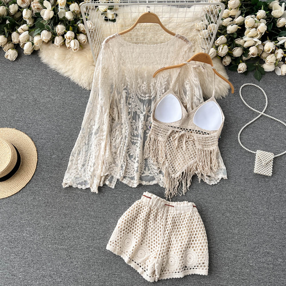 Elevate your beach style with our Lace-Up Beach Cardigan Cover-Up Set, featuring a chic knitted fringe design. This versatile swimsuit cover-up includes a stylish camisole and shorts, providing the perfect blend of comfort and sun protection for your vacation adventures. With its flattering fit and trendy details, you’ll feel confident and fashionable whether you’re lounging by the pool or strolling along the shore. Don’t miss out on this essential addition to your summer wardrobe—add it to your cart today!