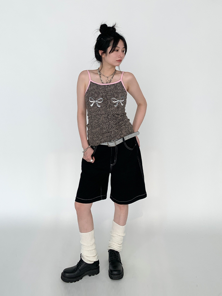 Concert Outfit Leopard Print Blingin Bow Pink Edge Summer Camisole Y2K Top able Outfits
