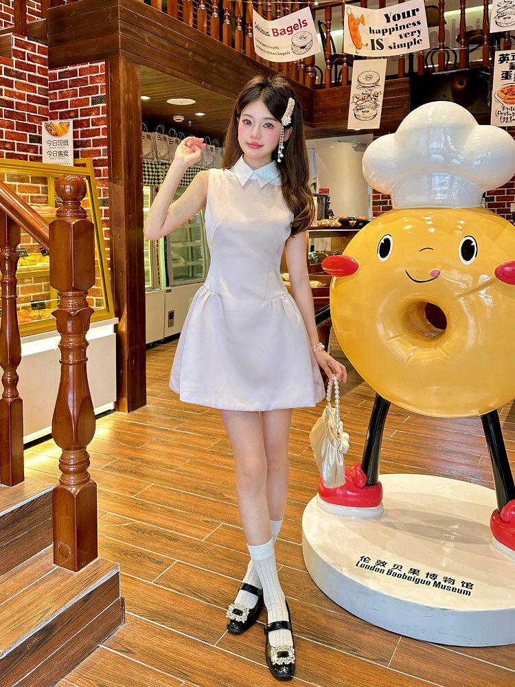 Concert Outfit Light Pink Glossy Satin Sleeveless Shirt Dress, Faux Two Skirt Spring, Y2K