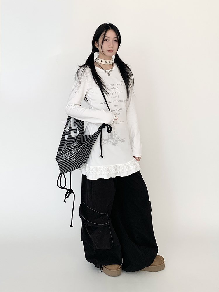 Concert Outfit Lightho Print Lace Trim Long Sleeve T- shirt Dress Layered Inner Top Women Slim Fit, Casual