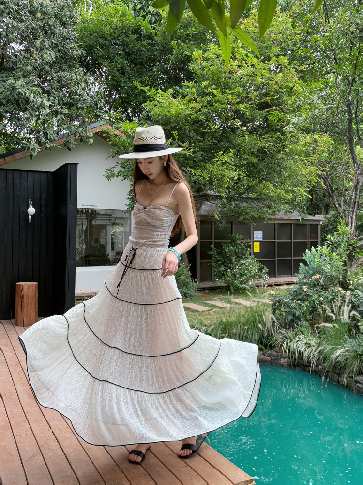 5 reviews for Concert Outfit Lightweight Adjustable Lace Camisole, Flared Tulle Long Skirt Set Summer, Boho