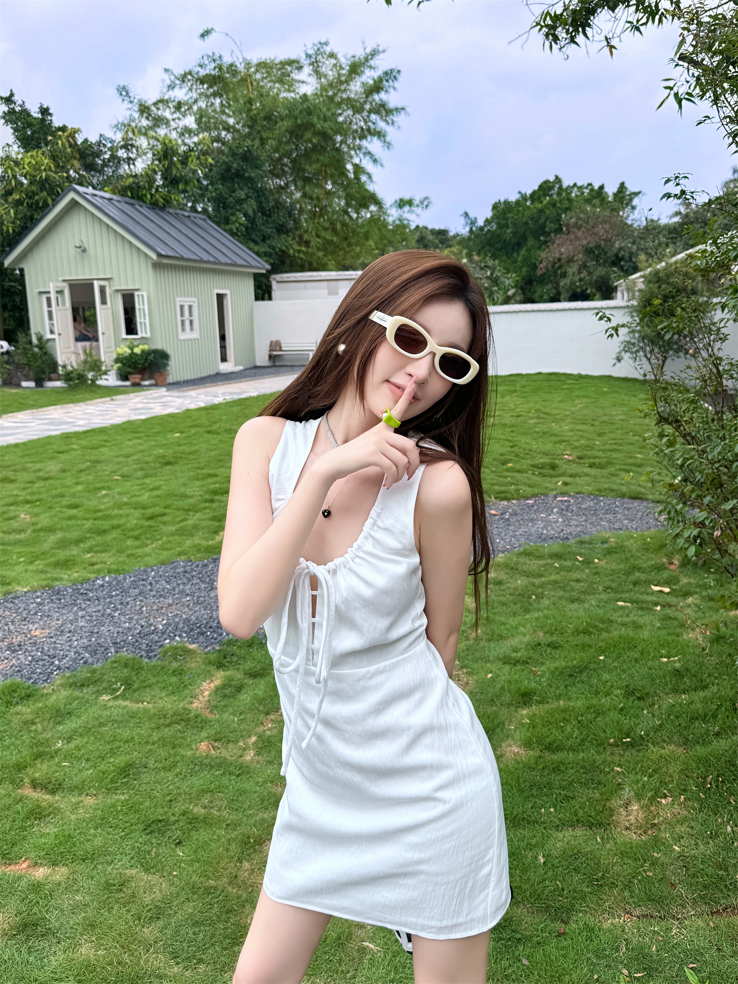 5 reviews for Concert Outfit Lightweight Adjustable U Neck Hollow Tank Dress Tencel Summer Dress Short SkirtWhite