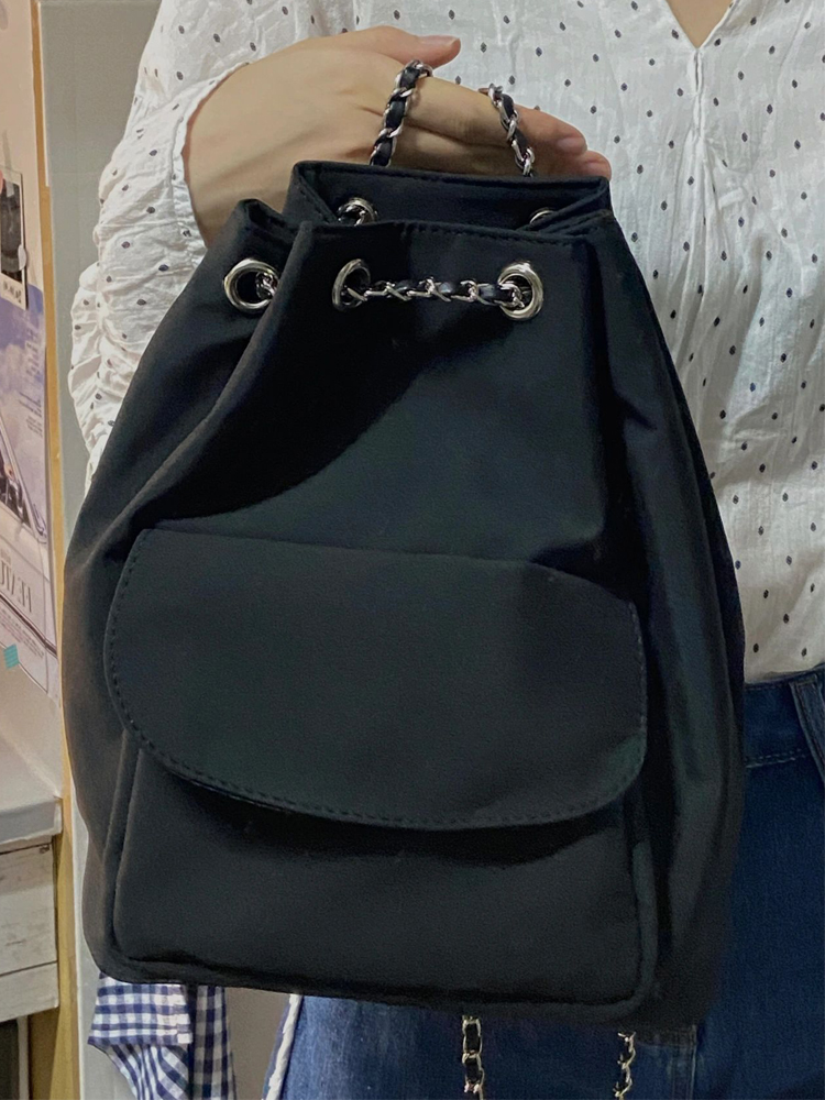 Elevate your summer style with our Lightweight Minimalist Black Drawstring Backpack for Women, the perfect blend of fashion and functionality. This chic commuting bag features an elegant chain detail that adds a touch of sophistication, while its spacious interior ensures you can carry all your essentials with ease. Designed for comfort and versatility, this backpack is ideal for daily outings or weekend getaways. Don’t miss out on this must-have accessory—add it to your cart today!