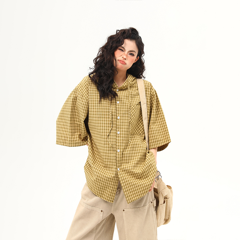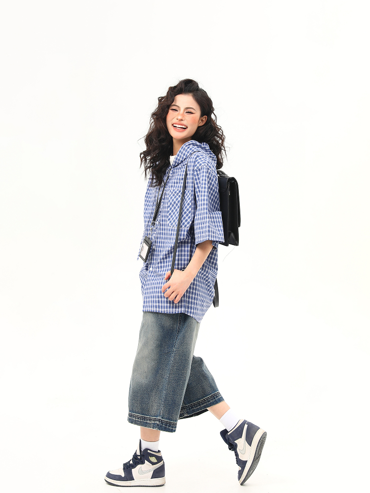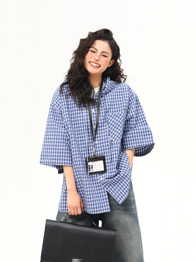 Elevate your summer wardrobe with our Loose Blue Plaid Hooded Short-Sleeve Shirt for Women, designed for a relaxed yet stylish fit perfect for any casual outing. The breathable cotton blend ensures comfort on warm days, while the trendy hood and playful plaid pattern add a touch of literary college charm to your look. Versatile enough to pair with shorts or jeans, this shirt is a must-have for effortless style. Don’t miss out—add it to your cart today and step into summer with confidence!