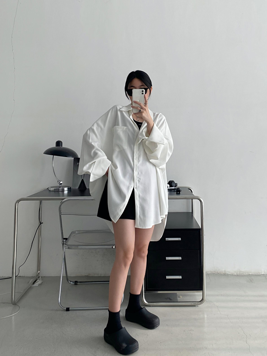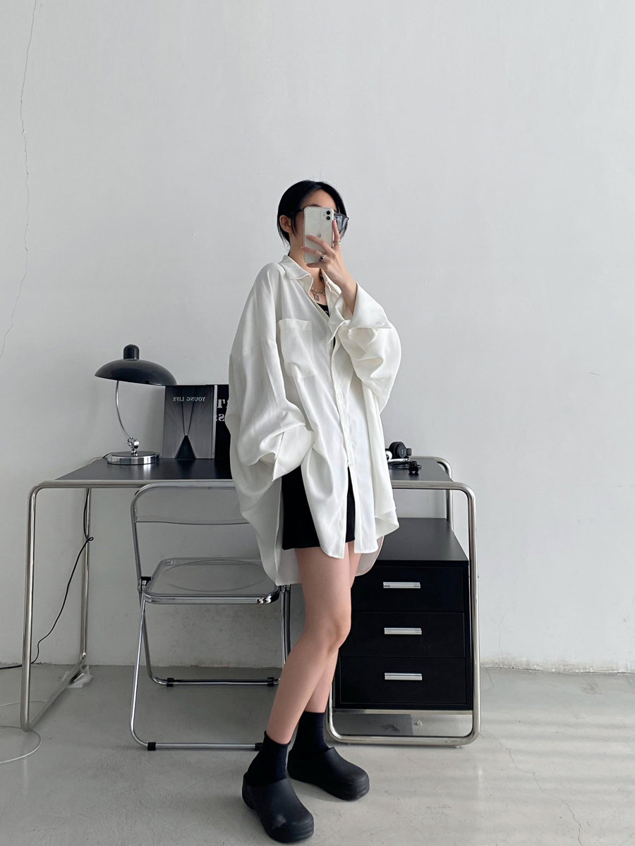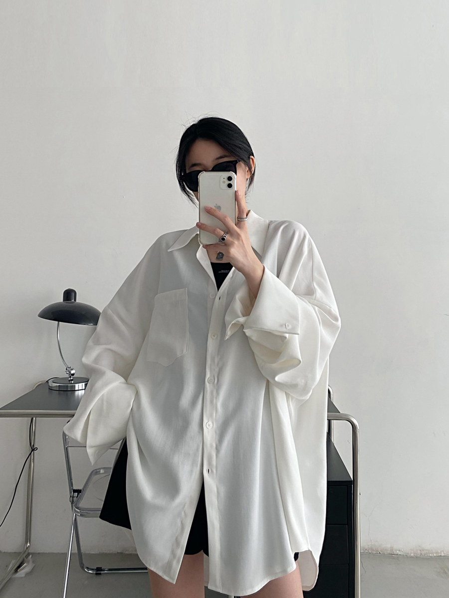 Concert Outfit Loose Long Sleeve White Shirt Women Sun Grapefruit, Spring, Autumn Outerwear