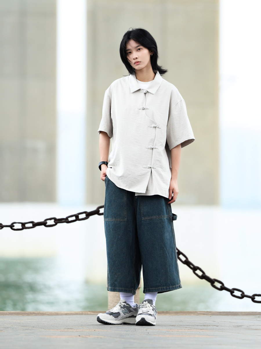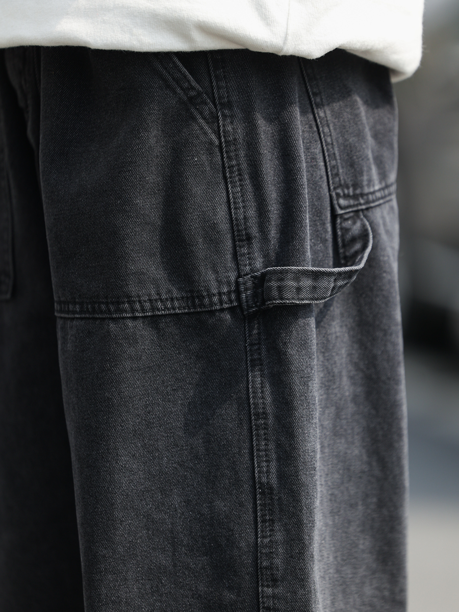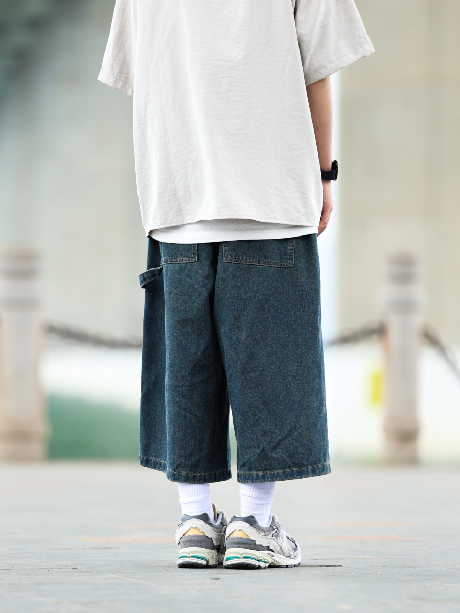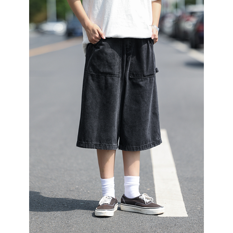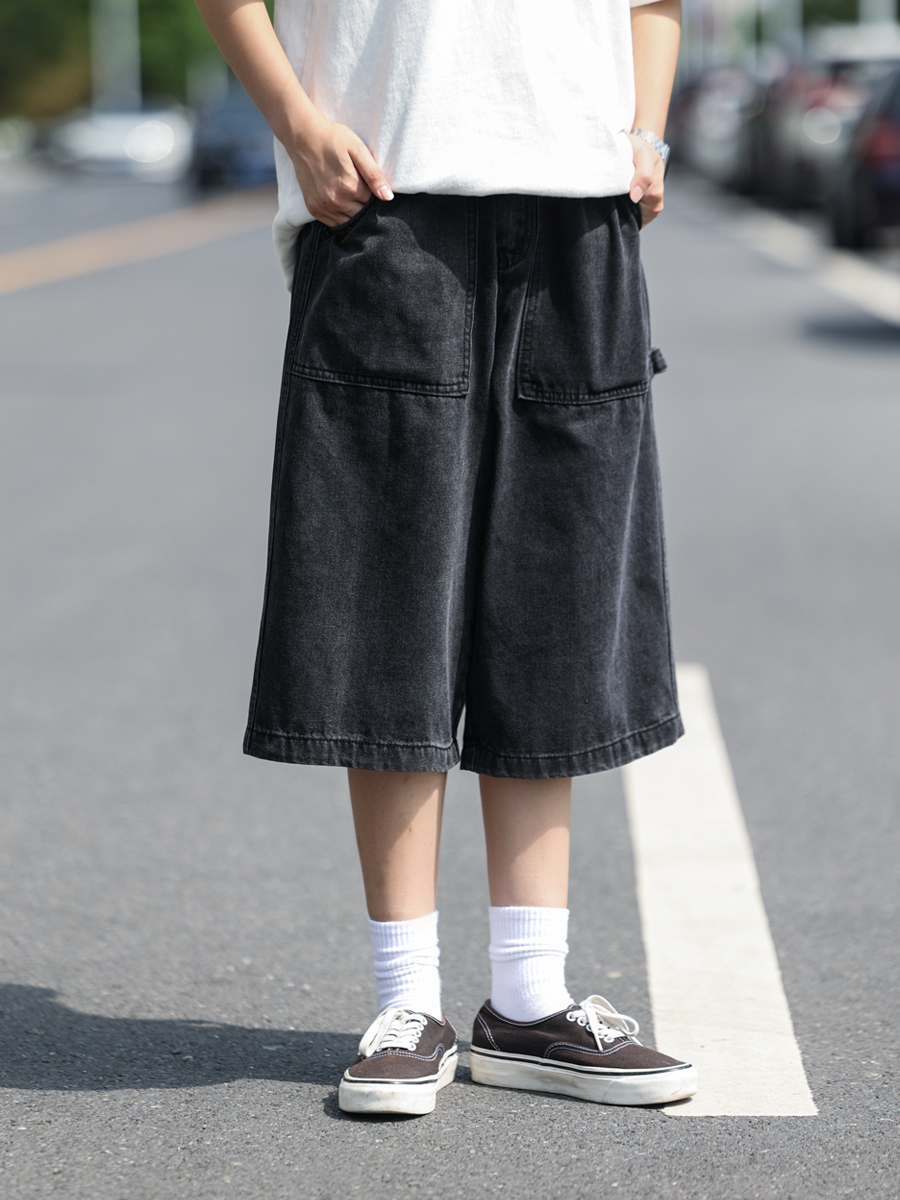Concert Outfit Men Loose Fit Denim Shorts, Retro Three Quarter City Boy Workwear, Y2K
