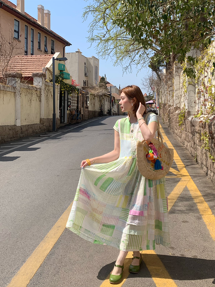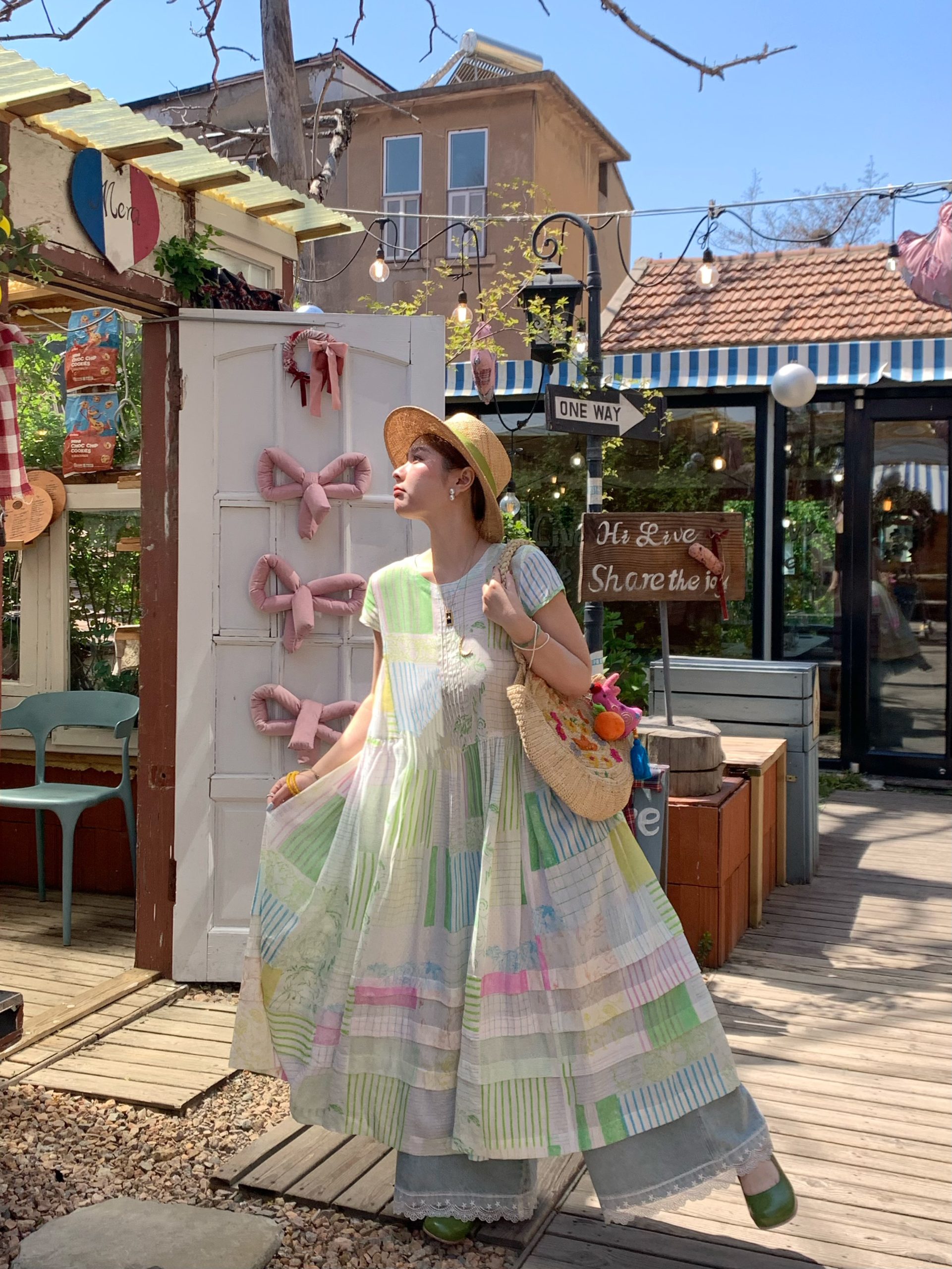 | Color | Pre-sale for green short-sleeved dress with sugar cube pattern, Sugar cube powder green short-sleeve dress, Sugar cube powder green vest dress, Sugar cube powder green vest dress pre-sale |